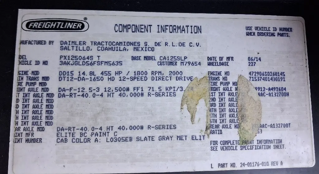 This item is from a FREIGHTLINER Cascadia 125.