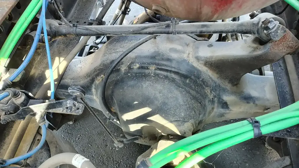 Detroit Front Rear Axle Housing, DA-RT-40.0-4S (RT40-NFD Front), w/ Torque Rod Bracket, 10 Hole Pilot, Air Drum Brakes, ABS. 53.5" Inner Flange To Inner Flange, STD Track, P/N A7753500130 (Replaced By MBA7753501830). Removed From Freightliner FAS II Airliner Suspension.