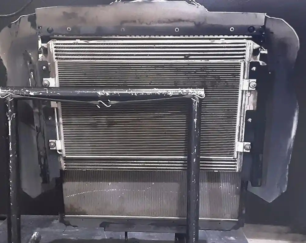 Used: Used Cooling Assembly, Complete, Includes RAD, CAC, and Condenser. Radiator P/N 1A021053003, 05-30989-003, 38 7/8"H x 38 1/2"W, 2 1/2" Inlet - Upper Right, 2 1/2" Outlet - Lower Left, Oil Cooler - 12" Centers.