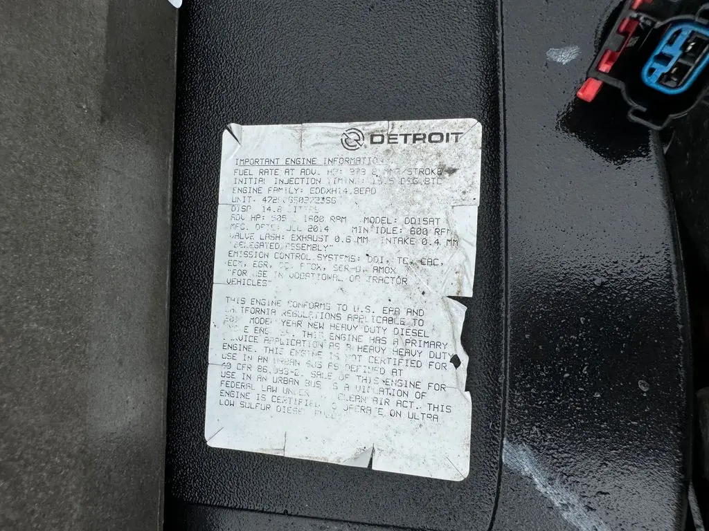 GOOD RUNNER: GOOD RUNNER (GOOD USED/ RUN TESTED/ FULLY INSPECTED) 2014 DETROIT DD15 DIESEL ENGINE, SERIAL # 472906S0272366, ENGINE FAMILY # EDDXH14.8EAD, 14.8 L, 505HP RATED @ 1800 RPM, TEST RUN WATCH VIDEO ON JJ REBUILDERS WEBSITE, LOW MILES, FULLY INSPECTED!!! RUNS PERFECT!!! CALL US FOR MORE INFORMATION ON THIS ENGINE OR ANY OTHER DIESEL ENGINE YOU MAY BE LOOKING FOR CALL 786-377-5210. INV # 006177