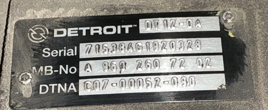 USED: USED Detroit DT12-OA Automatic Transmission, S/N-715384G920328, 939,062.1 ODO Miles, 939,062.2 ECM Miles, 27,644.95 Hours.