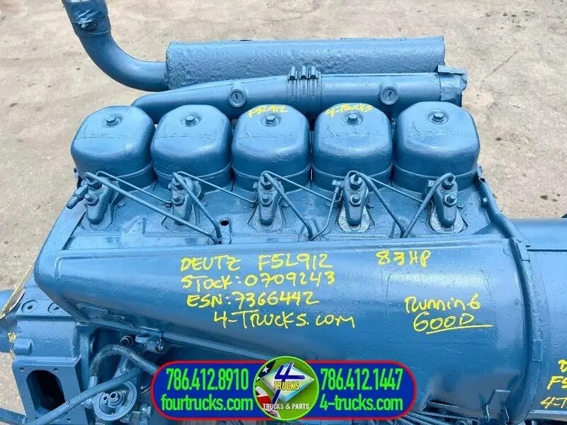 USED: USED USED DEUTZ F5L912 ENGINE, AIR COOLED, 83HP, 5 CYLINDER, ESN:7366442, COMPLETE, INSPECTED AND TESTED RUNNING ENGINE, ALSO MANY DEUTZ IN STOCK