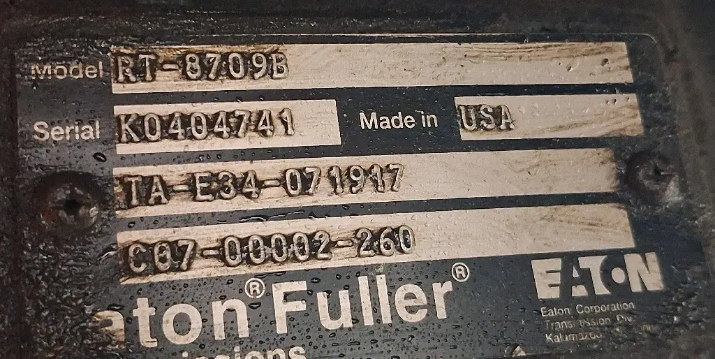 USED: USED Eaton RT-8709B Transmission, S/N- K0404741, p/n TA-E34-071917, Grade A - Needs PTO Cover Gasket. Unit Is In Good Condition.