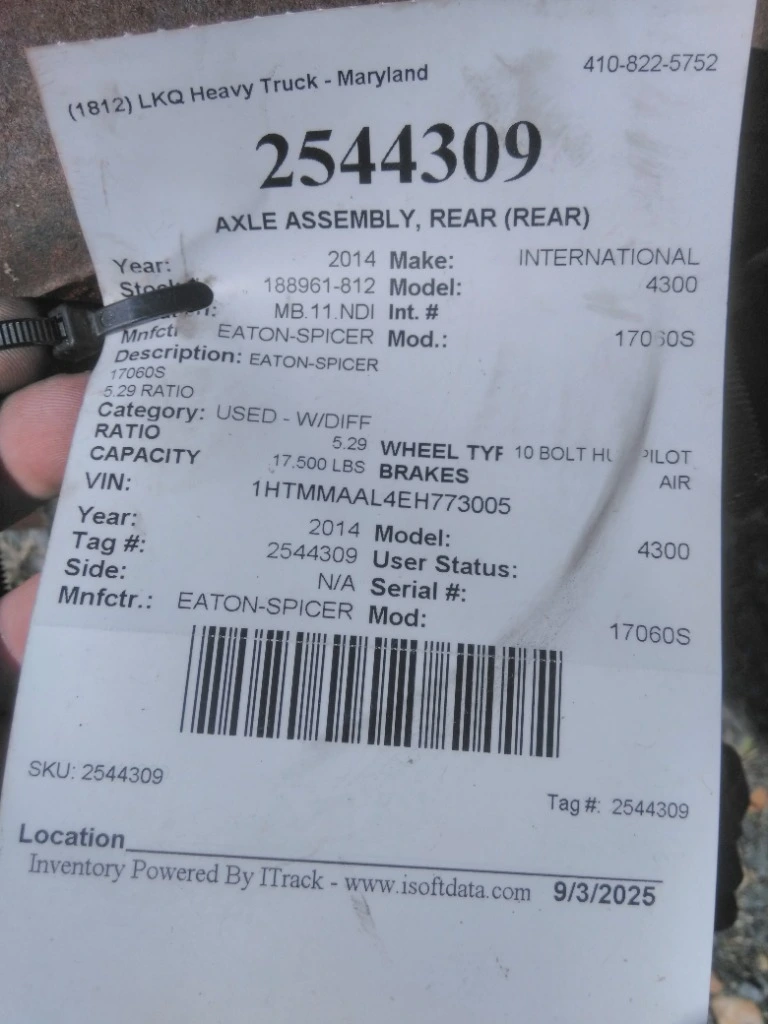 2014 EATON-SPICER 17060S AXLE ASSEMBLY, REAR (REAR)
