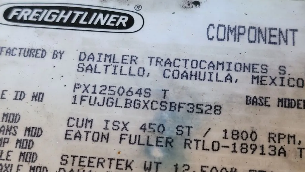 This item is from a FREIGHTLINER Cascadia 125.