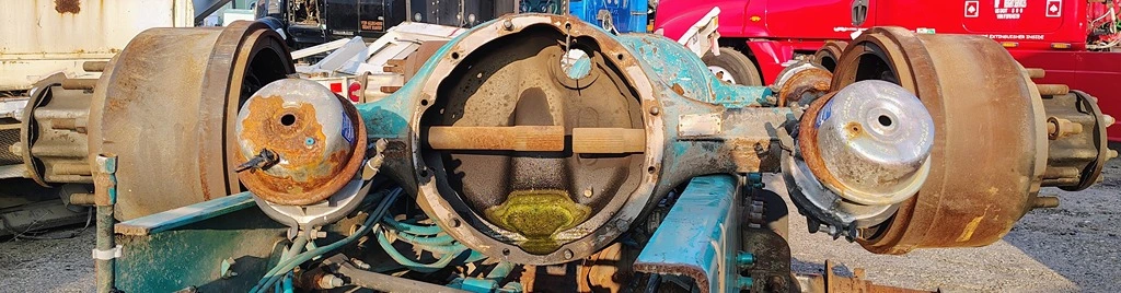 USED: USED Eaton Front Rear Axle Housing, DSS40, 10 Hole Pilot, Air Drum Brakes, ABS, 12 Hole Flange. P/N 307892. Torque Rod Brackets Removed.