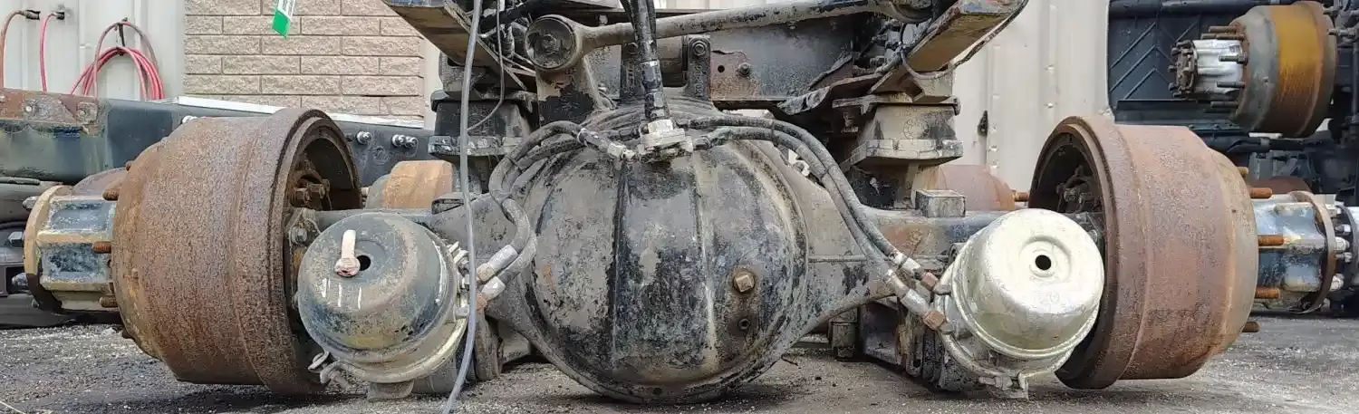 Used: Used Eaton Rear Axle Housing, RS403, w/ Torque Rod Bracket, 10 Hole Budd Hubs, Air Drum Brakes, 53" Inner Flange To Inner Flange, 8 Hole Flange, P/N 303347, 120432, S/N HU1575132. Removed From Hendrickson RS380 Suspension.