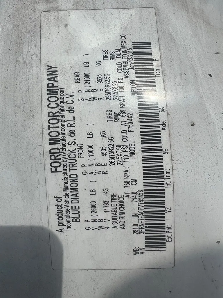This item is from a FORD F-750.