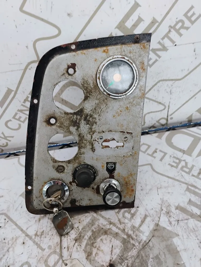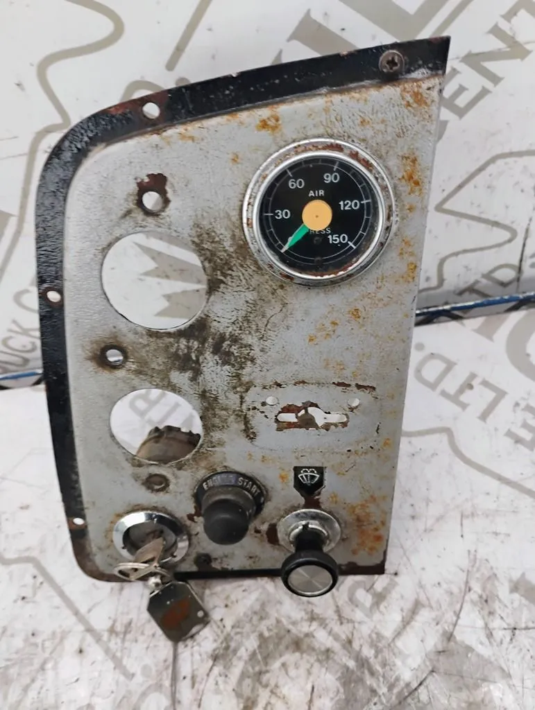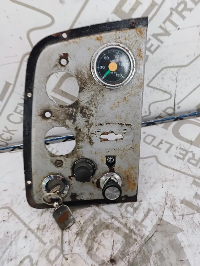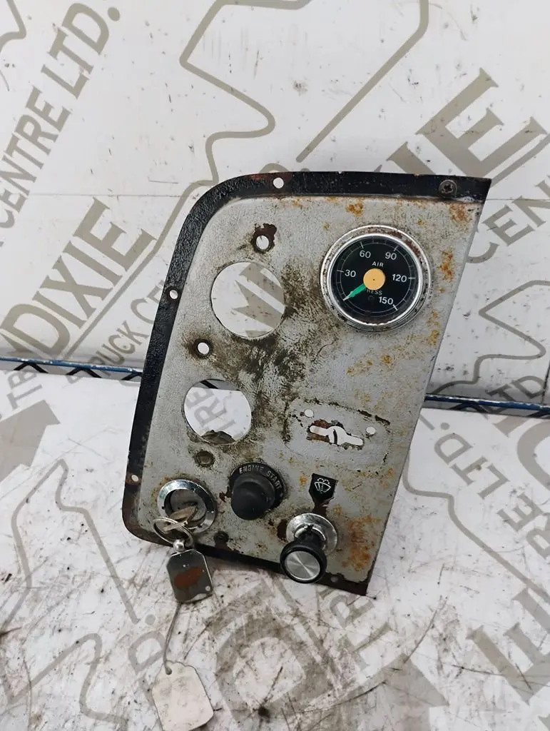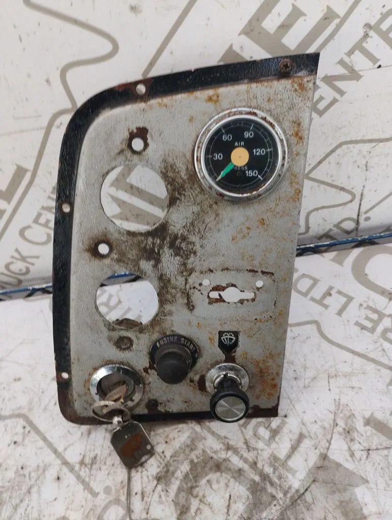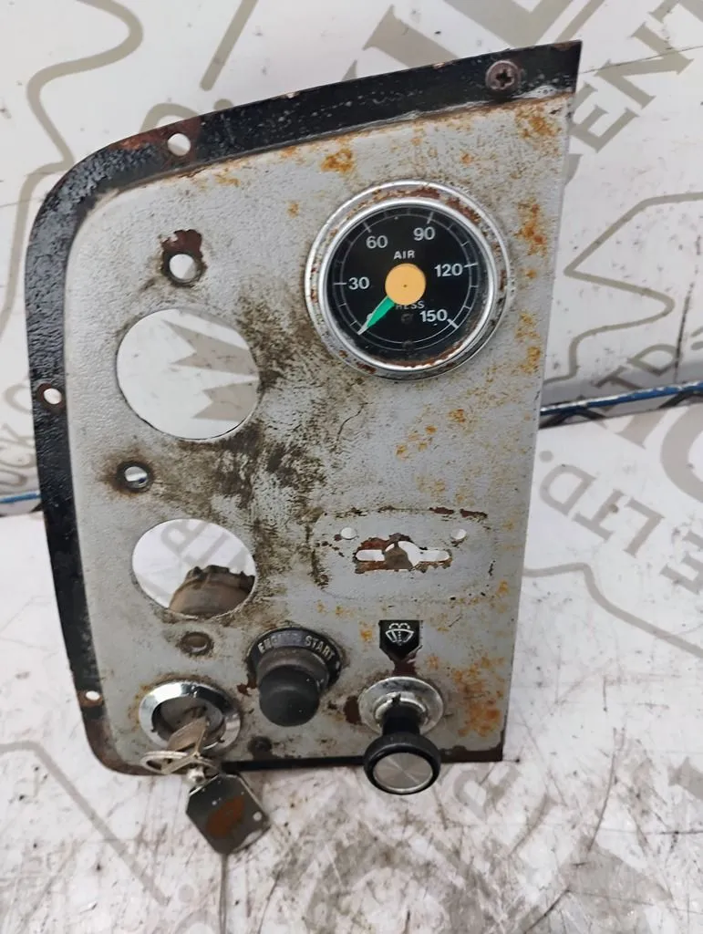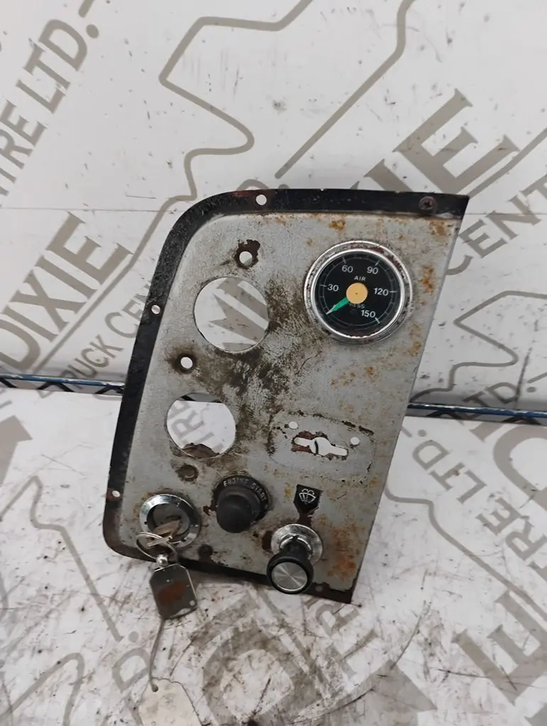 USED IGNITION DASH PANEL WITH KEYS AIR PRESSURE GAUGE, WIPER CONTROL AN A ENGINE START BUTTON TWO GUAGES MISSING AS SHOWN IN PHOTO