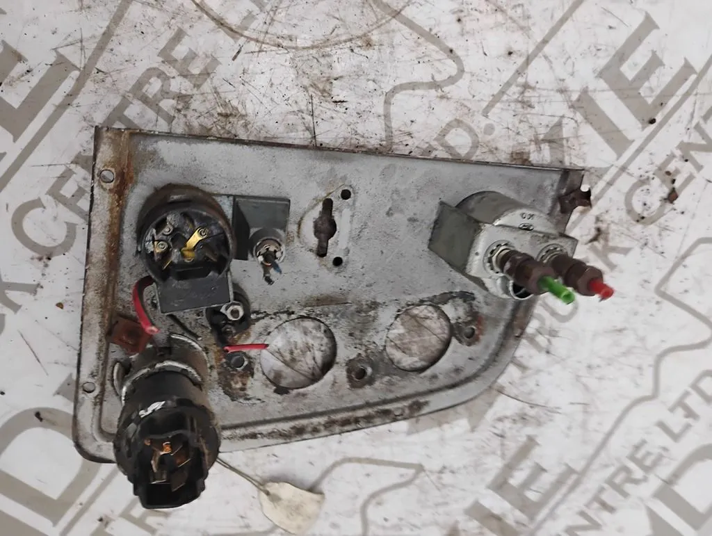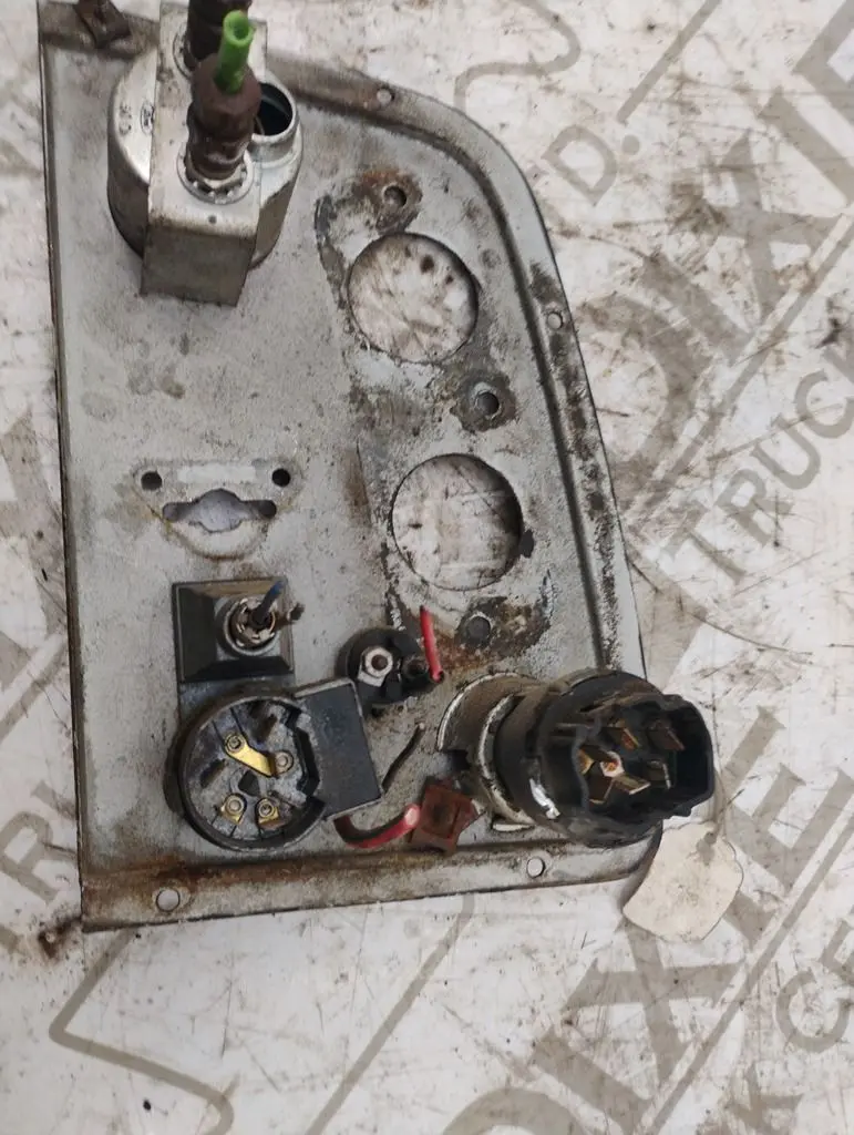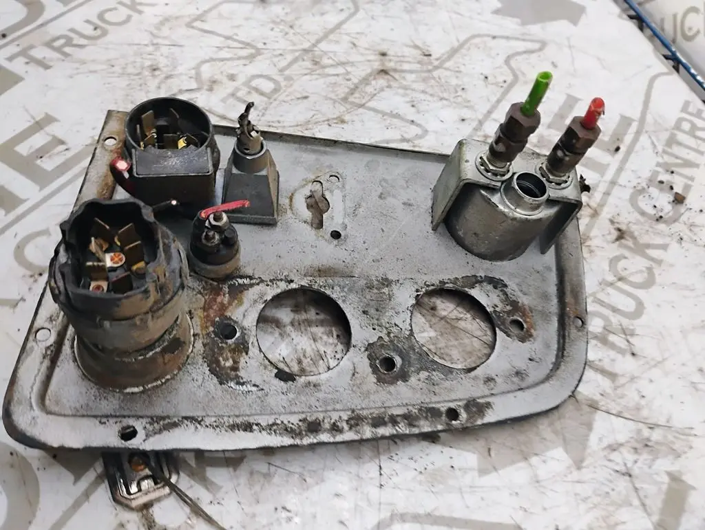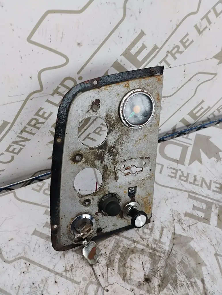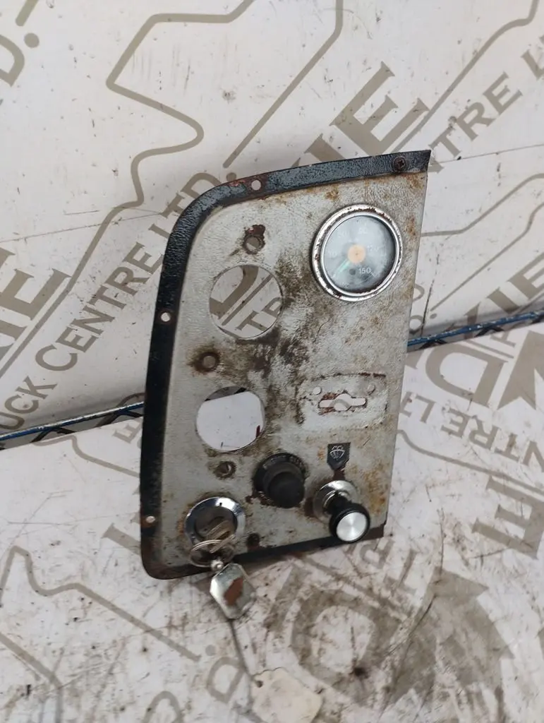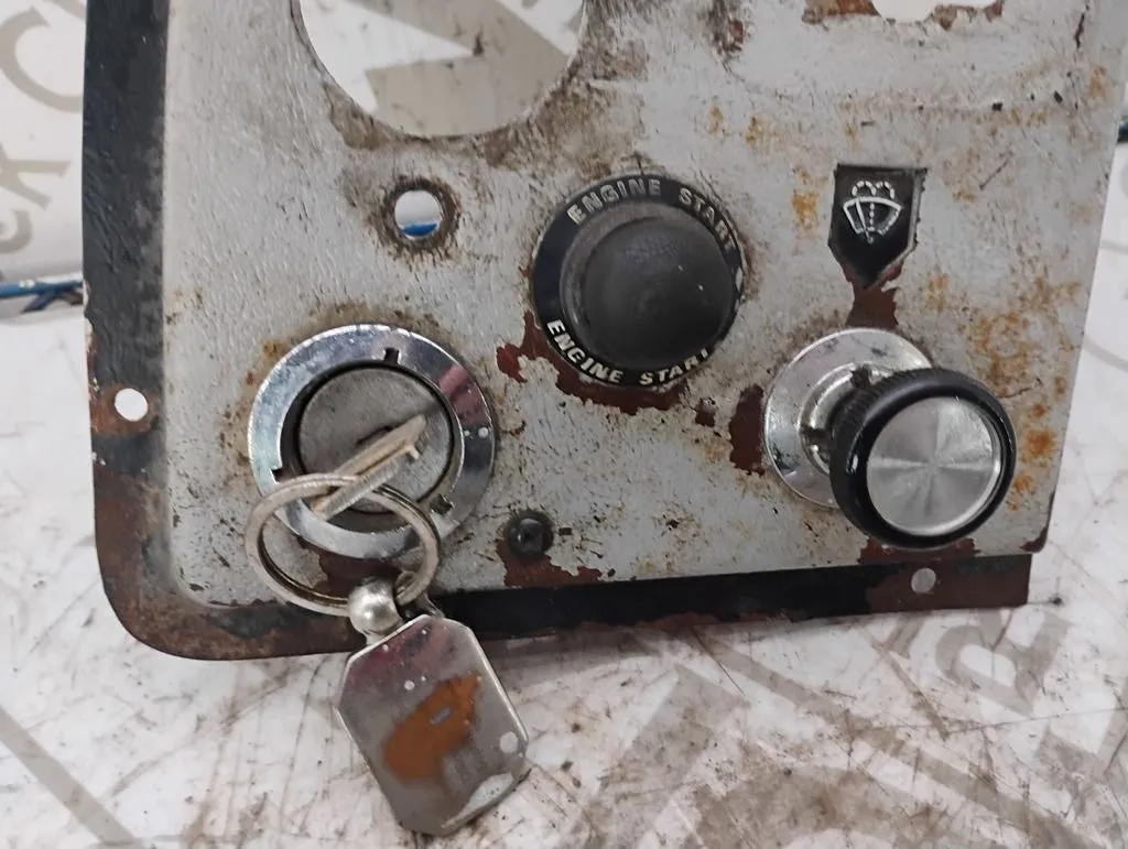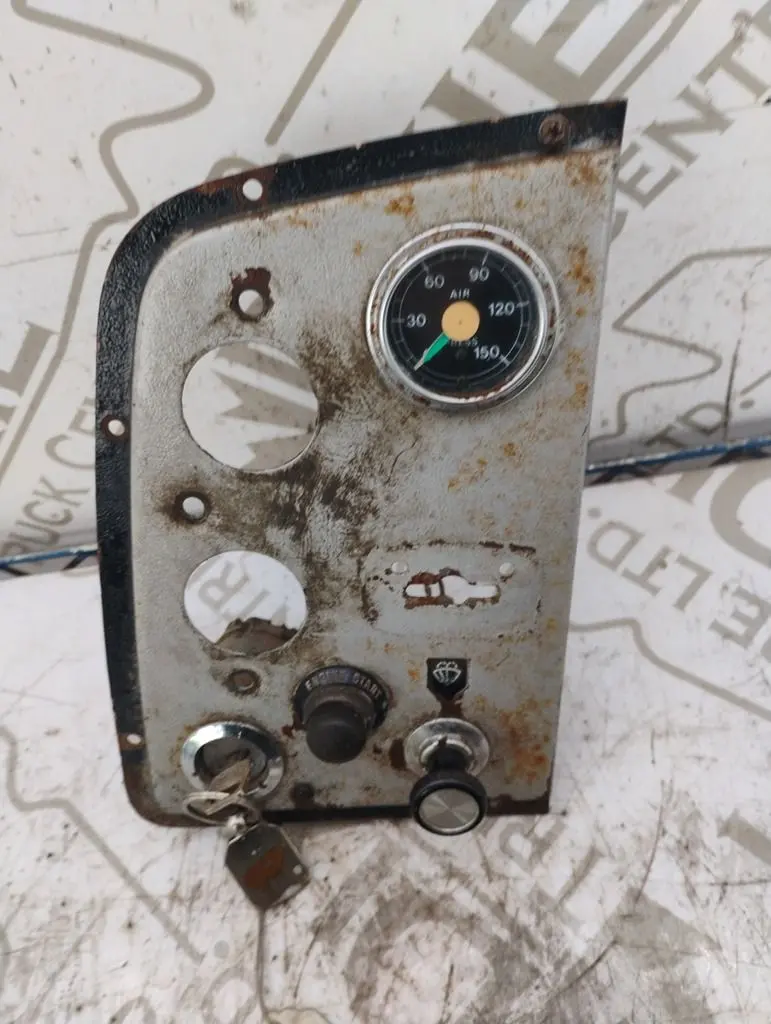 USED IGNITION DASH PANEL WITH KEYS AIR PRESSURE GAUGE, WIPER CONTROL AN A ENGINE START BUTTON TWO GUAGES MISSING AS SHOWN IN PHOTO