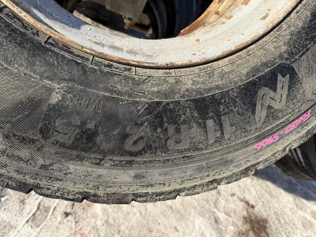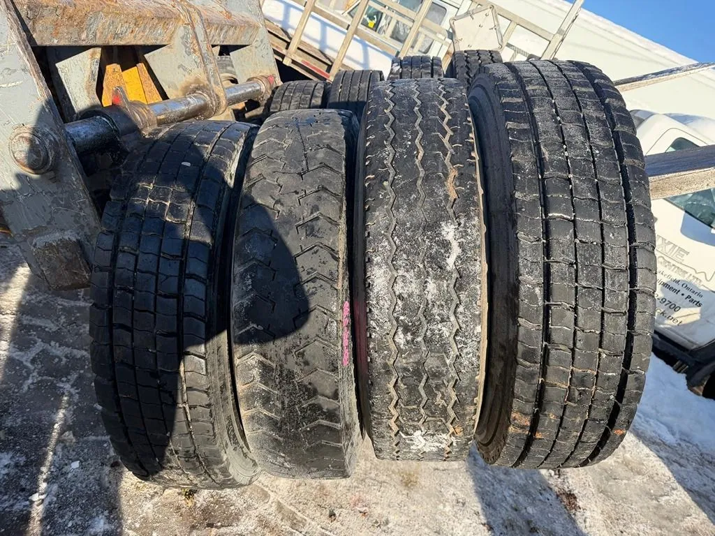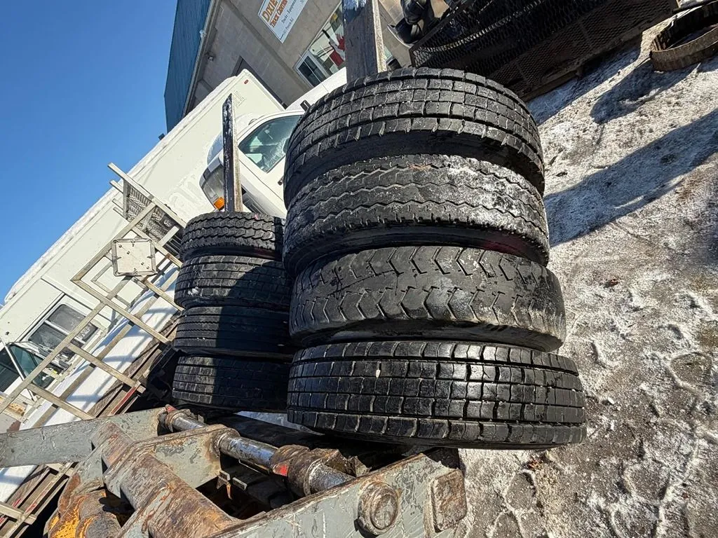 USED 8 11R22.5 CONTENTIAL AND DIAMOND TIRES WITH OPEN RIMS