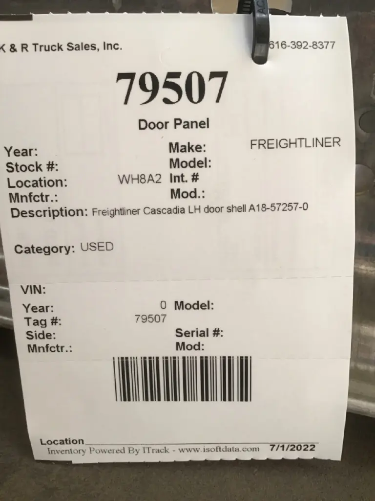 USED: USED Freightliner Cascadia LH door shell A18-57257-0