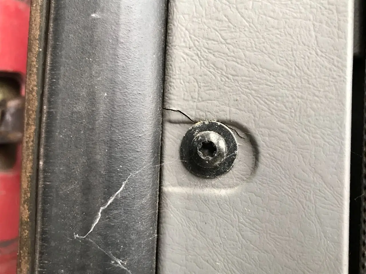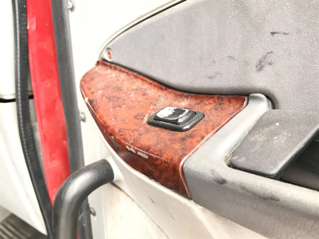 USED: USED COMPLETE, DOES NOT INCLUDE MIRROR, 4 BOLT HOLES CRACKED ALONG INSIDE EDGE OF INTERIOR PANEL