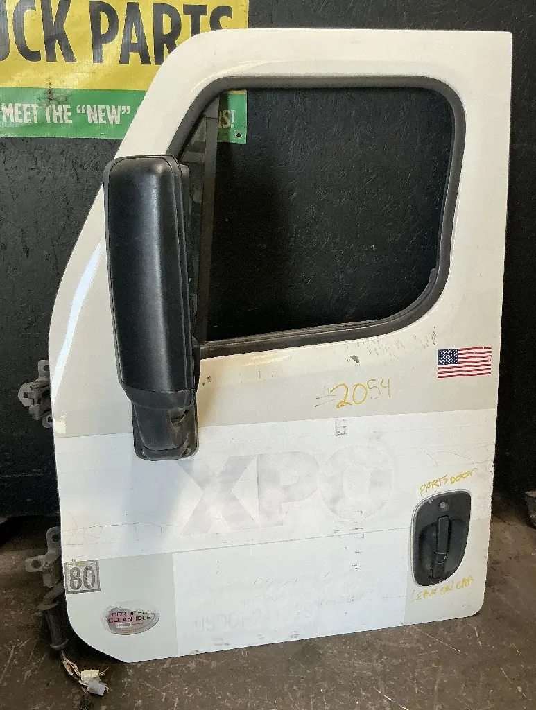 USED: USED 2013 Freightliner Cascadia 113 Driver Side Door Assembly w/ Mirror, Power Window. Missing Switches & Switch Panel Trim.