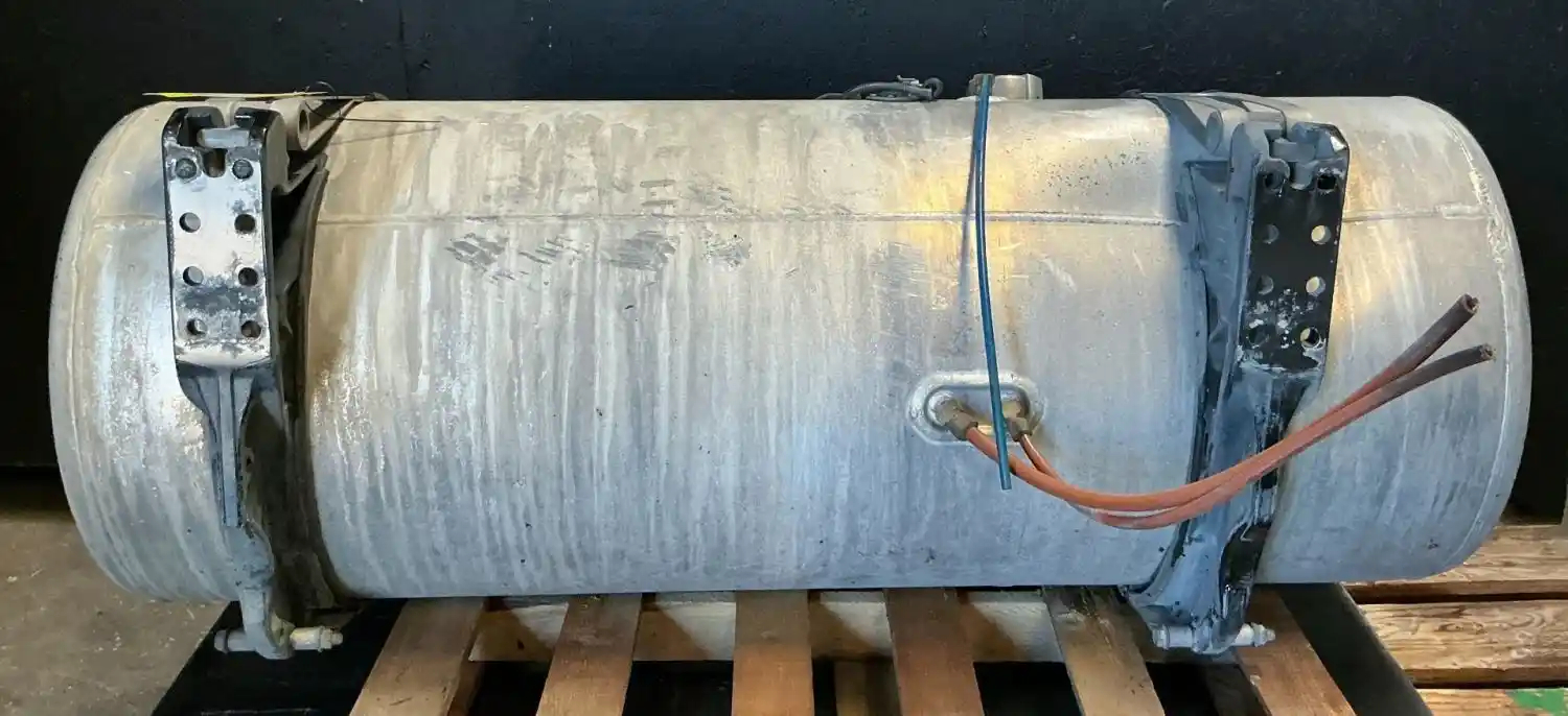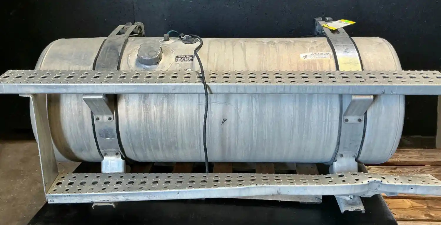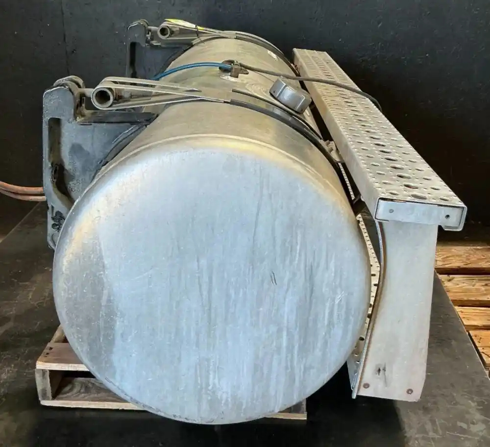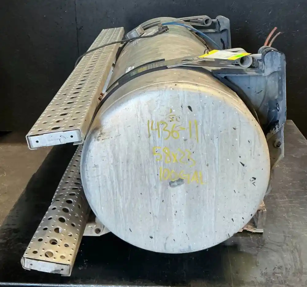 USED: USED Driver Side Fuel Tank, 58"L x 23"Dia, 100 Gallon Capacity, w/ Steps & Brackets. Bottom Step Bent.