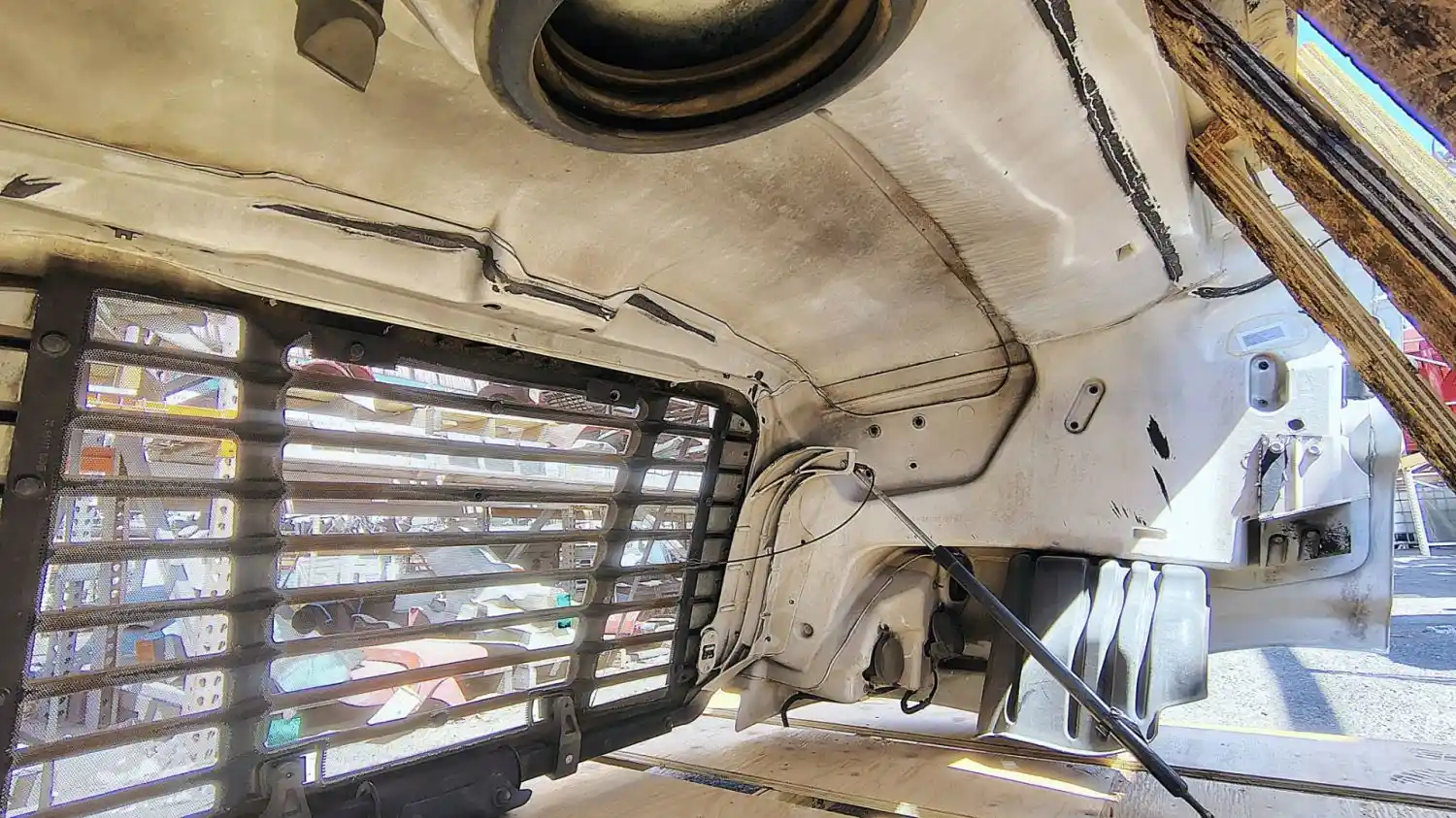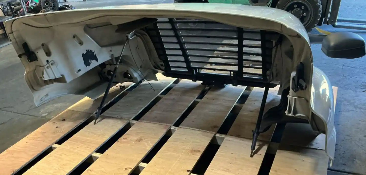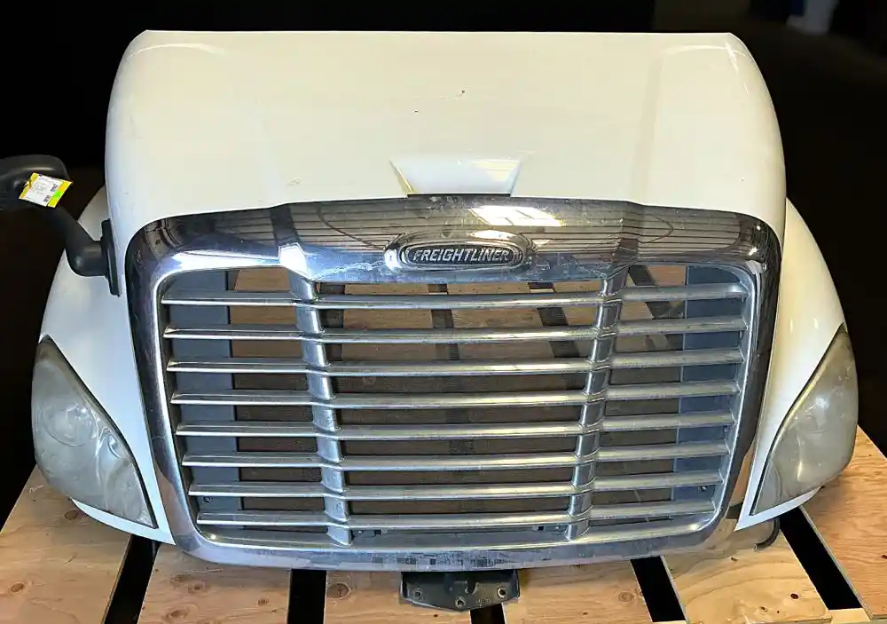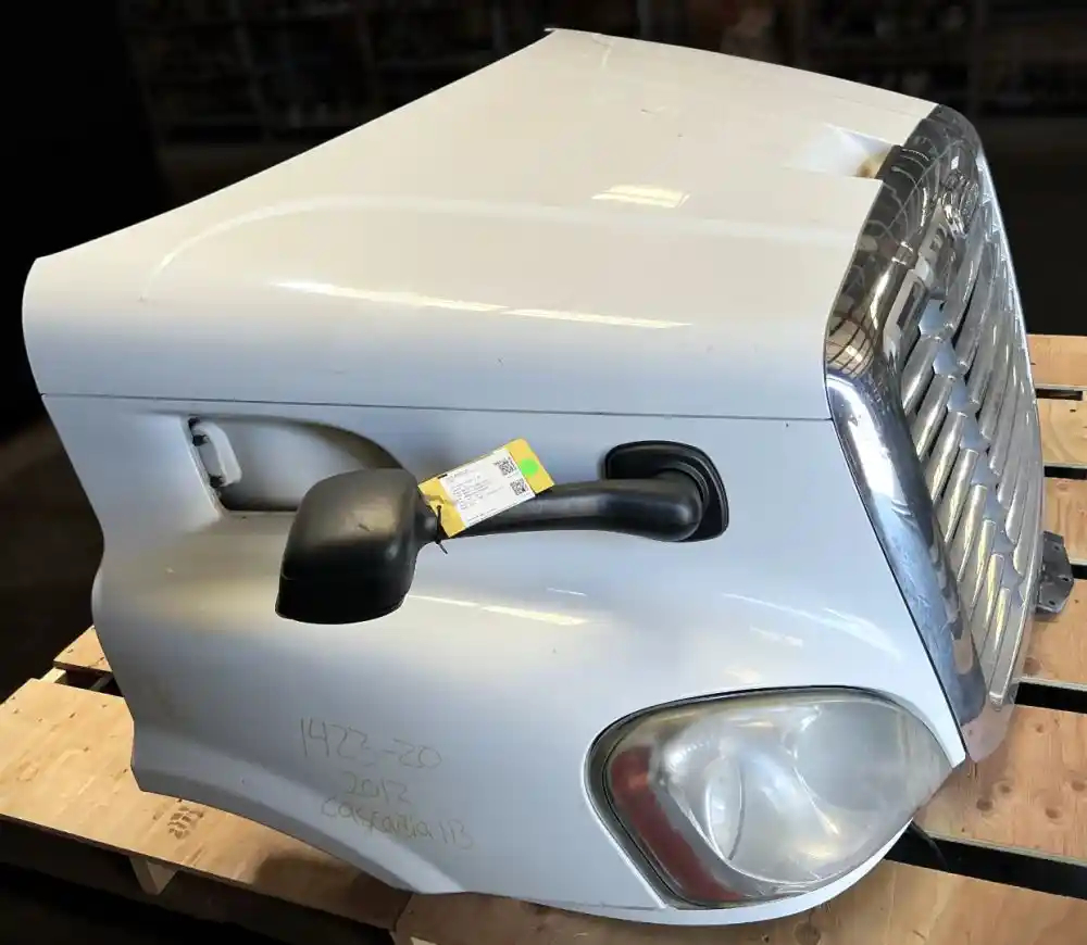 Used: Used 2013 Cascadia 113 Hood, 36.5"L, Set Back Axle, P/N A17-15588-001 (Replaced By A17-15588-010). Includes RH Mirror. Missing Side Vents, Grille Cracked, LH Headlight Cracked.