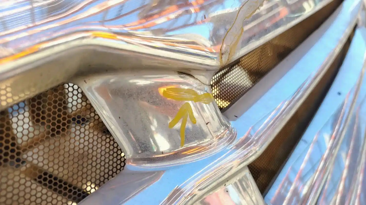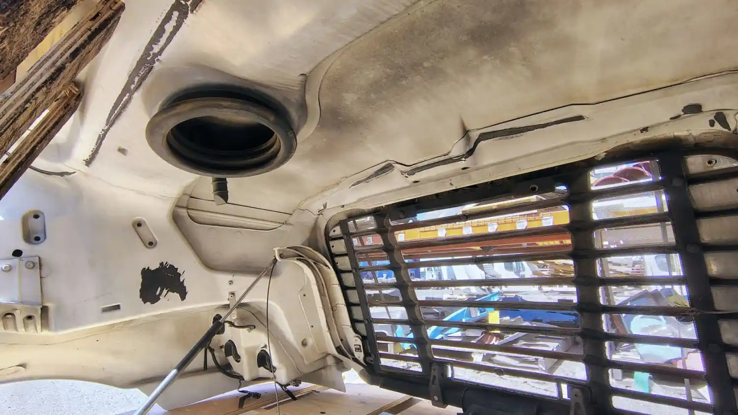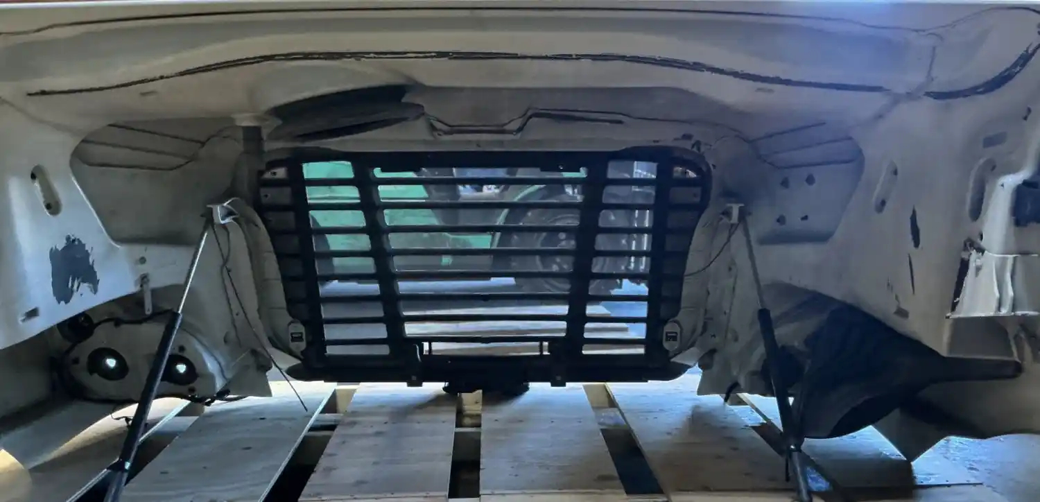 Used: Used 2013 Cascadia 113 Hood, 36.5"L, Set Back Axle, P/N A17-15588-001 (Replaced By A17-15588-010). Includes RH Mirror. Missing Side Vents, Grille Cracked, LH Headlight Cracked.