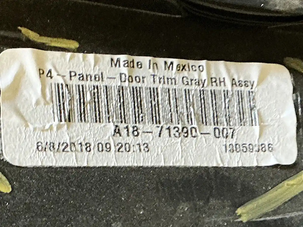 Used: Used 2019 Freightliner Cascadia 116 Passenger Side RH Interior Door Panel, P/N A18-71390-007, 18-71390-020.