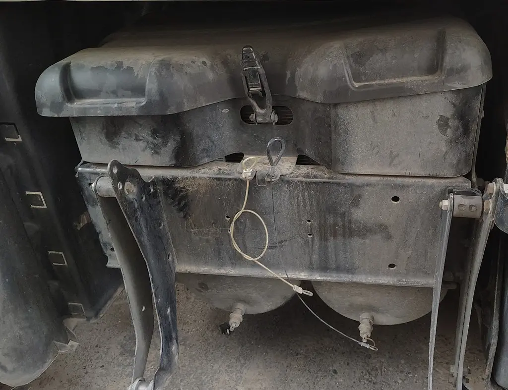 USED: USED Driver Side Battery Box, 4 Battery Capacity 27"L x 14"W x 10"H.