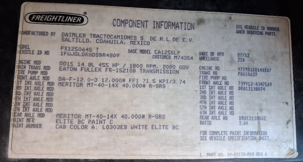 This item is from a FREIGHTLINER Cascadia 125.