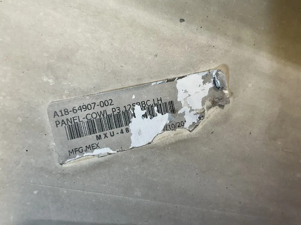 USED: USED LH Driver Side Cab Cowl From 2014 Freightliner Cascadia 125. P/N A18-64907-002