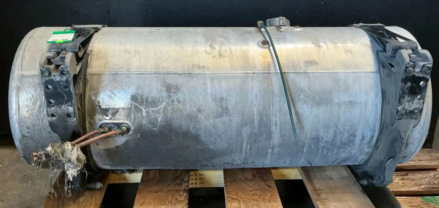 USED: USED Driver Side LH Fuel Tank, 58"L x 23"Dia, 100 Gallon Capacity, w/ Straps & Brackets.