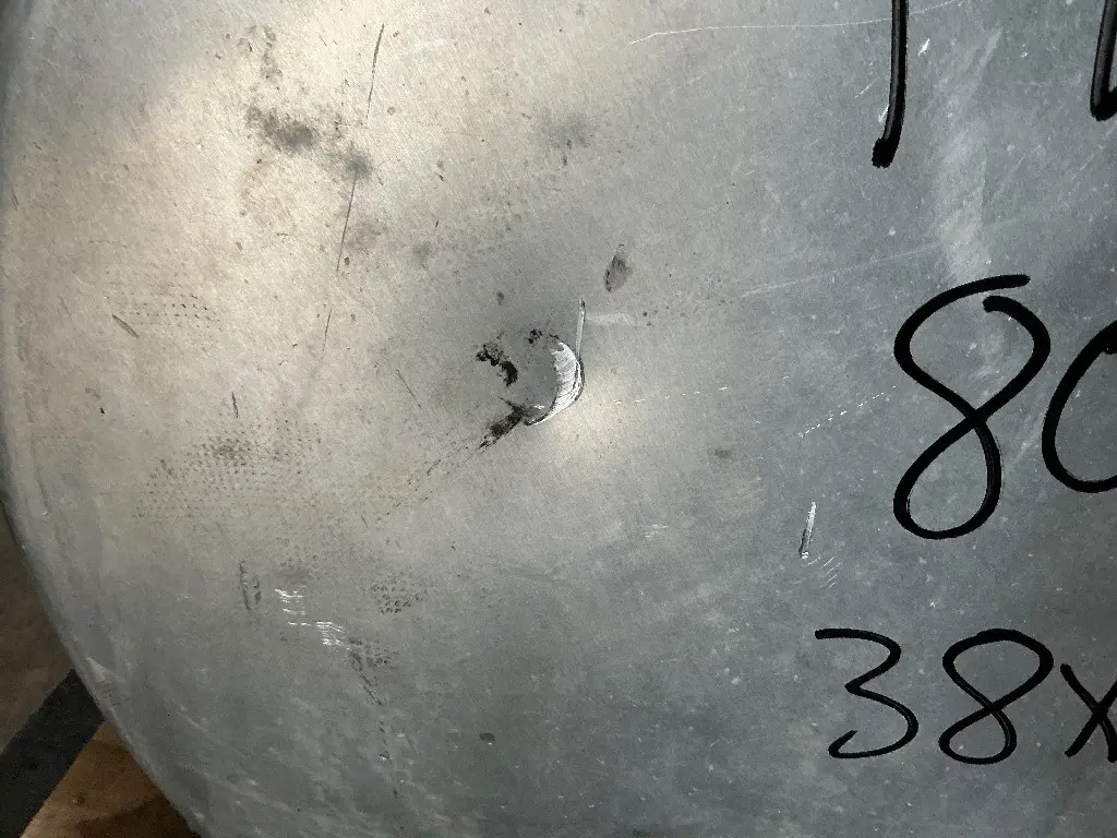 USED: USED 2011 Freightliner Cascadia 125 Driver Side Fuel Tank,38"L x 25"Dia, 80 Gallon Capacity, w/ Straps & Brackets. Lower Step Bradket Bent, Small Dents On Endcap. P/N A03-38090-180