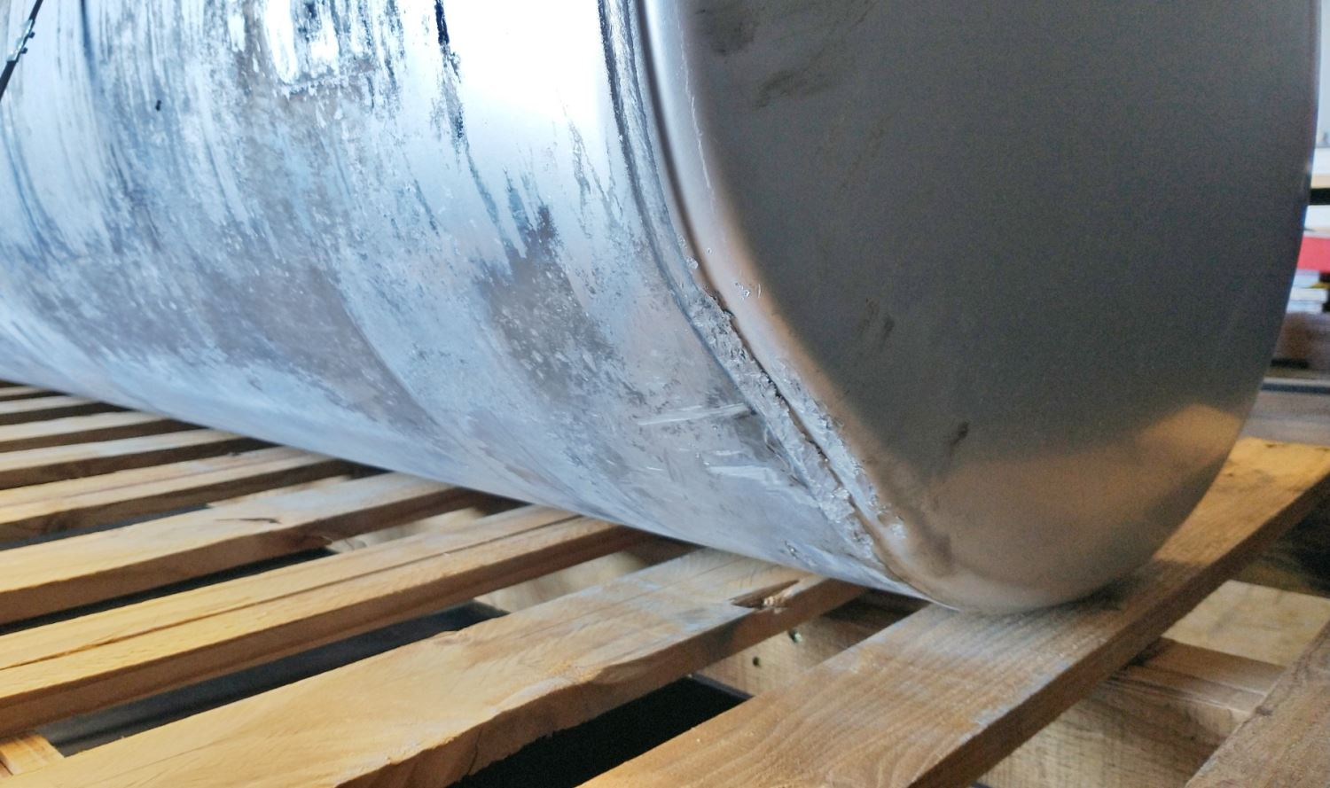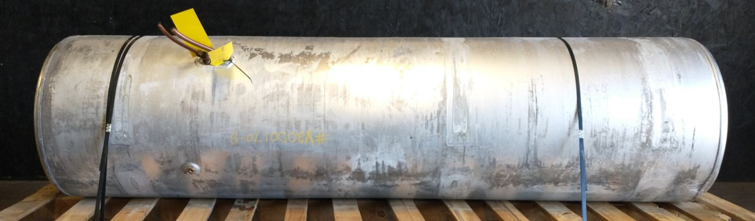 USED: USED Passenger Side RH Fuel Tank, 87"L x 23"Dia, Aluminum, 150 Gal, No Straps or Brackets. Dent on Lower End Area