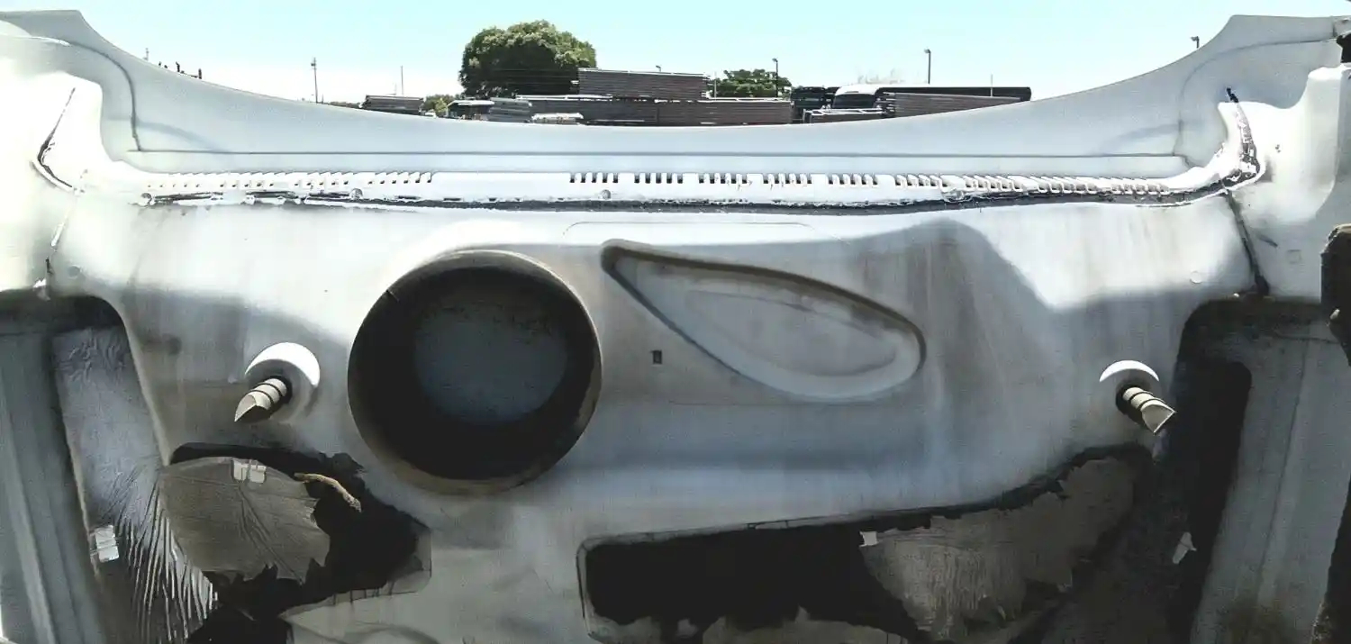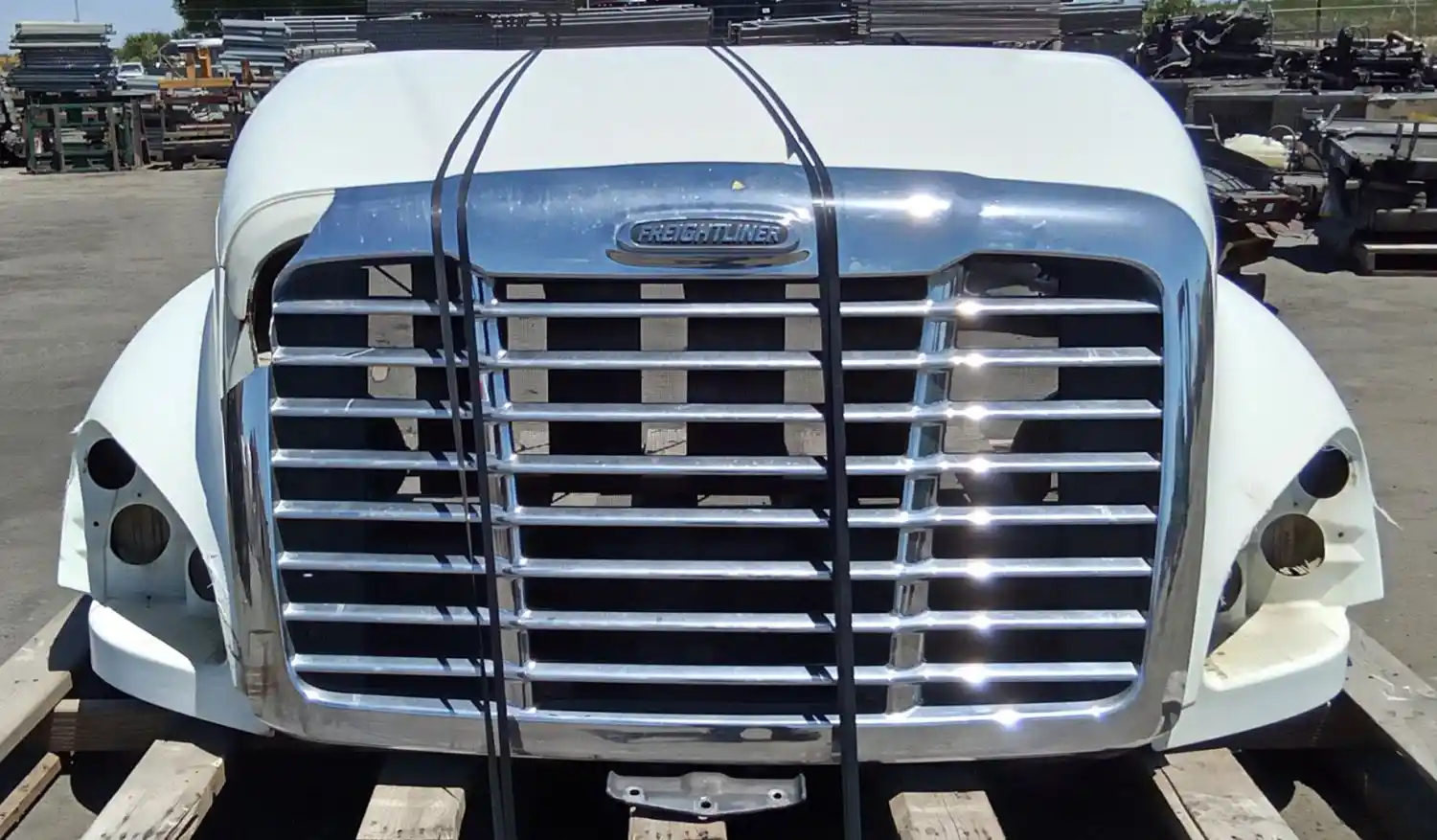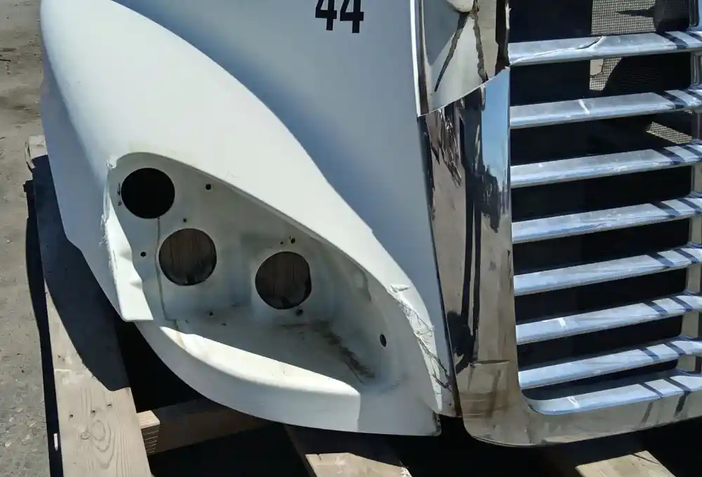 Used: Used 2010 Freightliner Cascadia 125 Hood, 48"L, No Headlamp Assemblies, Grille Damaged, 2 Cracks Near Upper Rear Edge. Repairable
