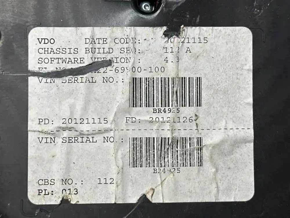 (Used) 2013 Freightliner Cascadia 125, INSTRUMENT CLUSTER- Part Number: A22-69900-100, Gauges: Oil Pressure, Water Temp, RPM, MPH, Fuel Level, DEF Level, Brake Air Pressure (P), Brake Air Pressure (S), Minor Damage in plastic cover, Reference images for condition, For more information about this item, give us a call. We ship Worldwide! (CRG HEAVY TRUCK PARTS) 929 W PULASKI HWY, ELKTON, MD 21921