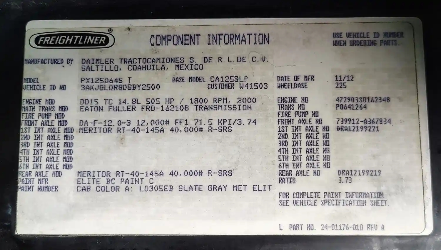 DD15 EPA10, 505 HP, S/N 472903S0162348,