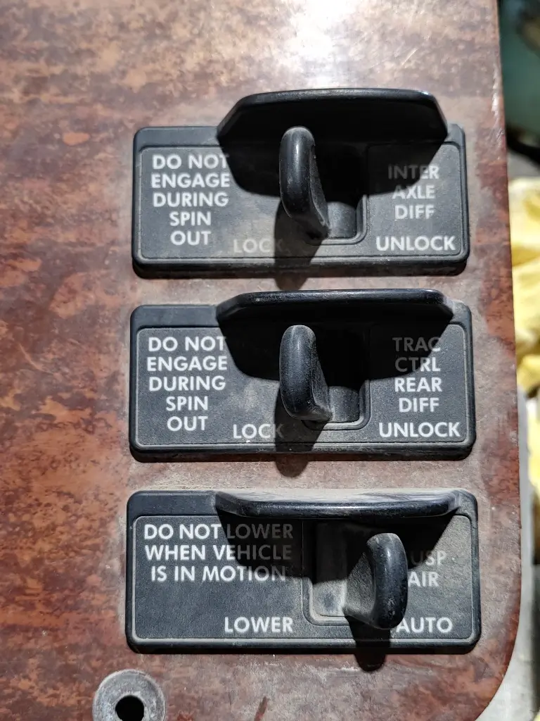Switches : Inter-axle Diff Lock/ Unlock , TRAC CTRL Rear Diff Lock/Unlock and Air Susp. Lower /Auto