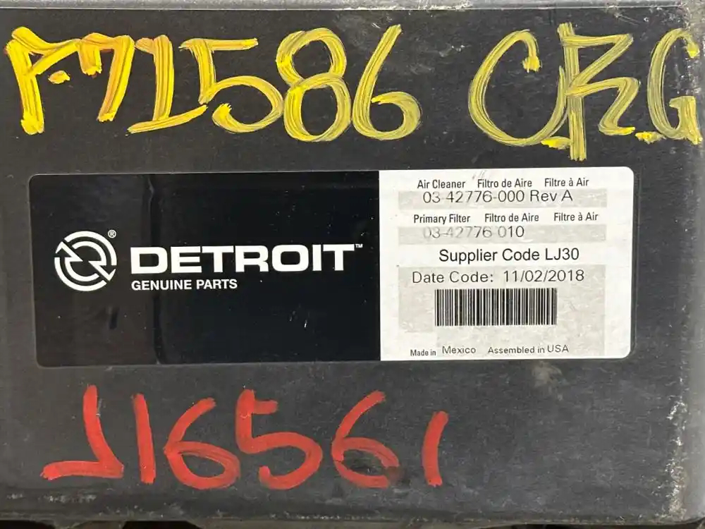 (Used) 2018 Freightliner Cascadia 126, AIR CLEANER- Part Number: 03-42776-000, 03-42776-010, Side: Above the Engine, Color: Black, Material: Plastic, Engine: Detroit DD15, Dimensions: Length=25", Width=30", Small Crack!! Reference images for condition. For more information about this item, give us a call. We ship Worldwide! (CRG HEAVY TRUCK PARTS) 929 W PULASKI HWY, ELKTON, MD 21921