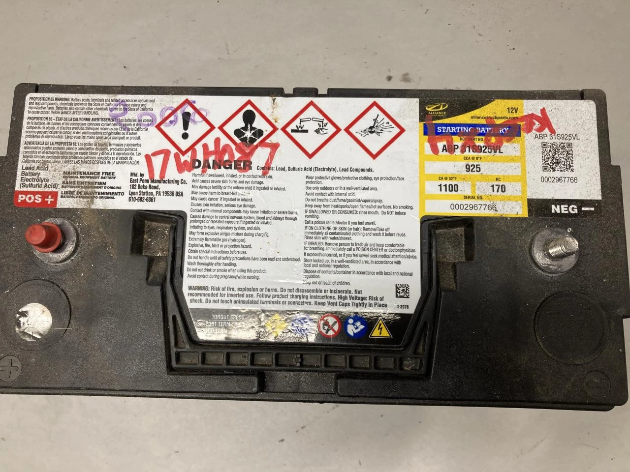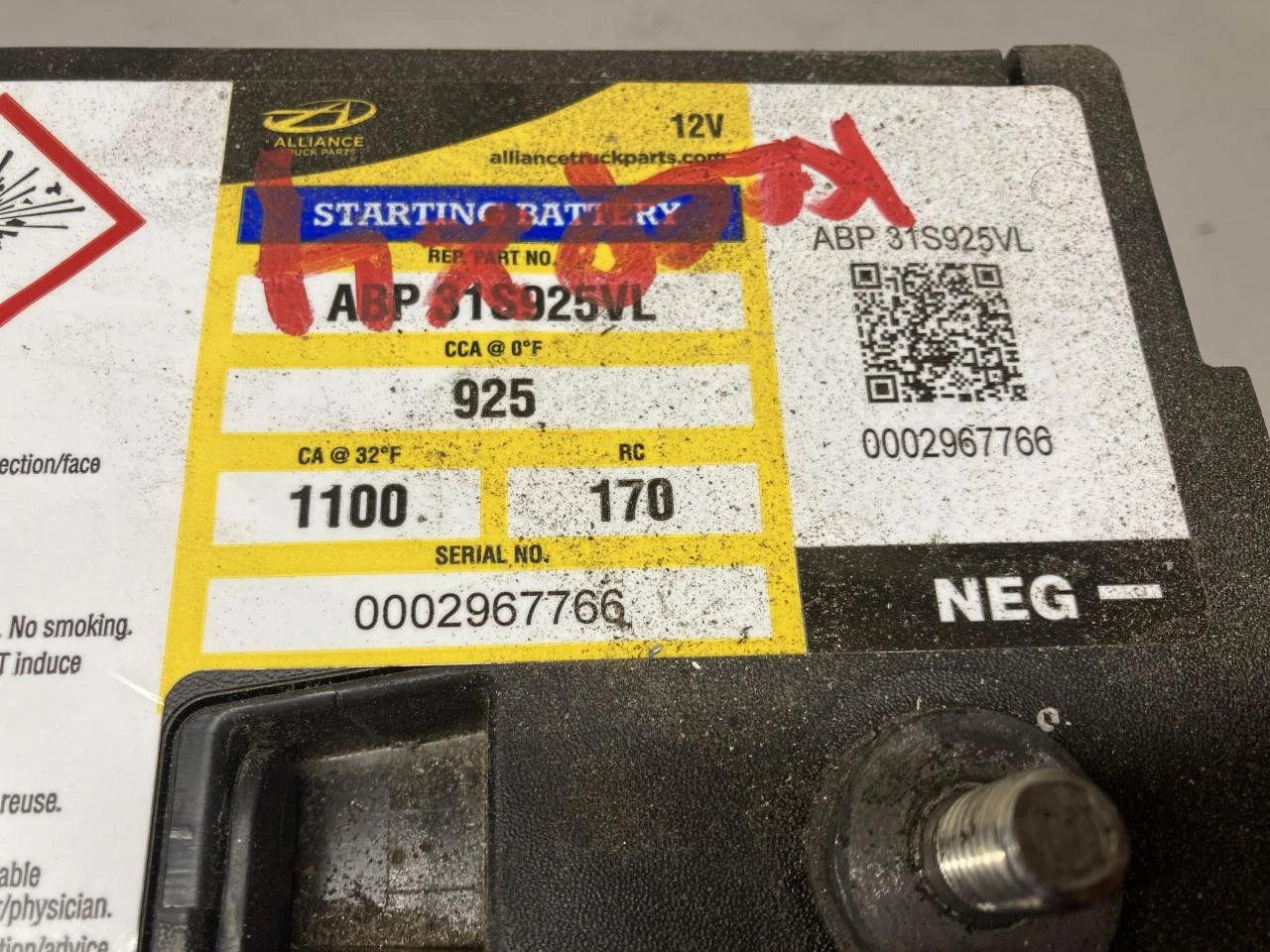 USED: USED ALLIANCE TRUCK PARTS, 925CCA 1100CA 170RC ID: ABP 31S925VL