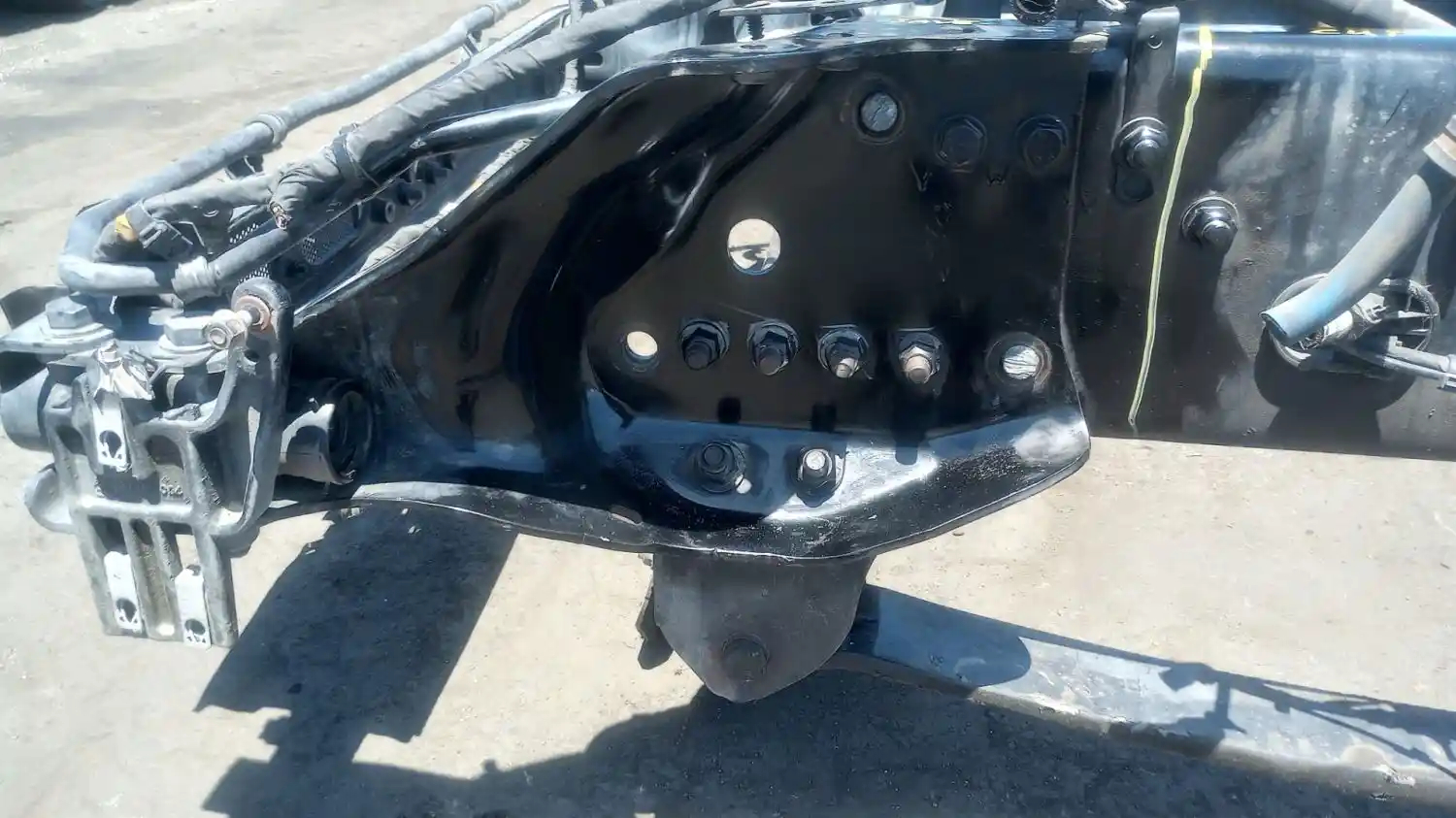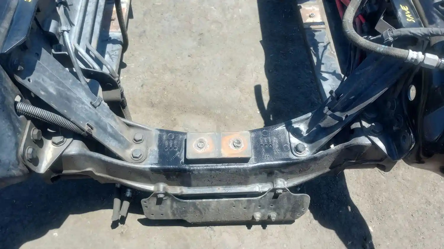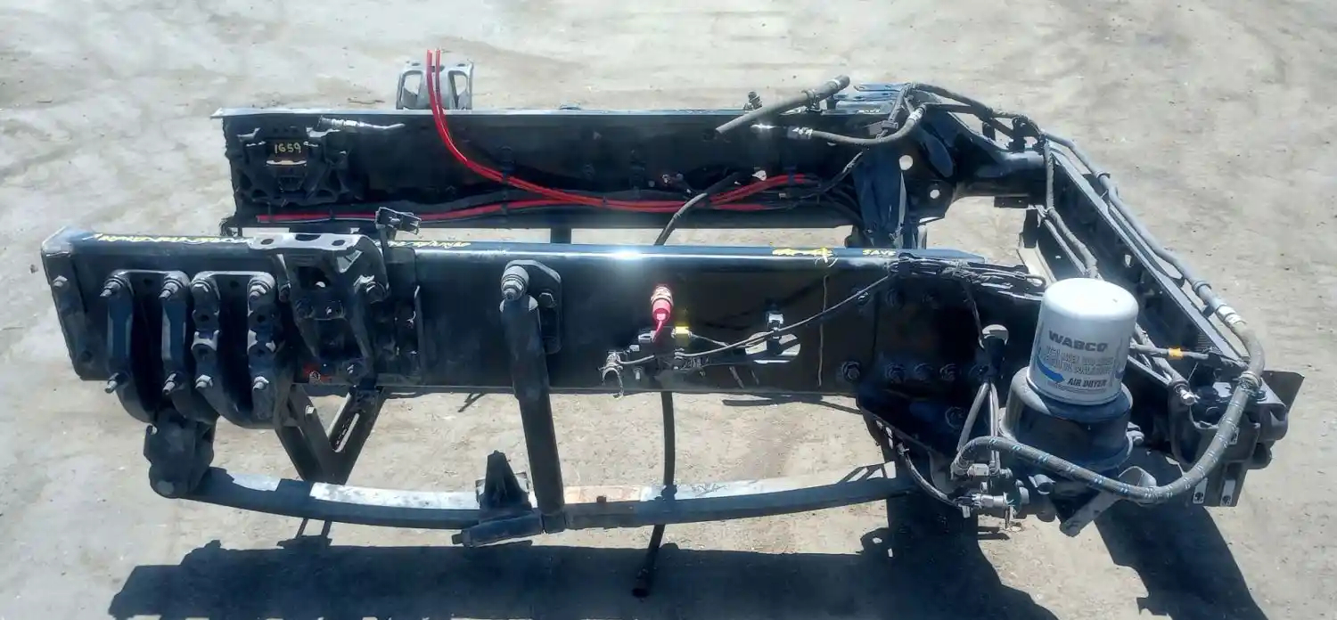 2019 Freightliner Cascadia 126 Front Steering Suspension, For DD15 Engine & DA-F12.5-3 Front Axle. Includes Radiator Core Support, Front Motor Mount (P/N A15-29410-000), Frame Horns (P/N's 15-28666-015, A15-28667-010) Springs (33" Centers, 4"W), Hangers, Shocks & Air Dryer.