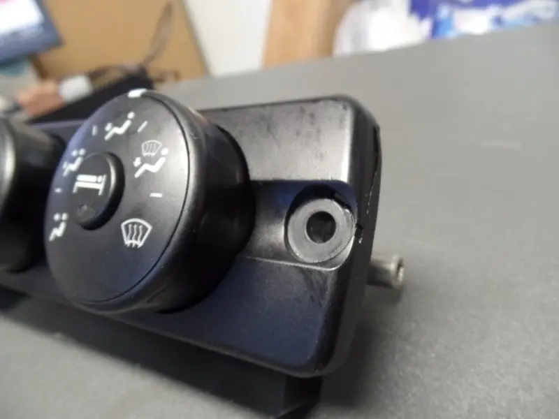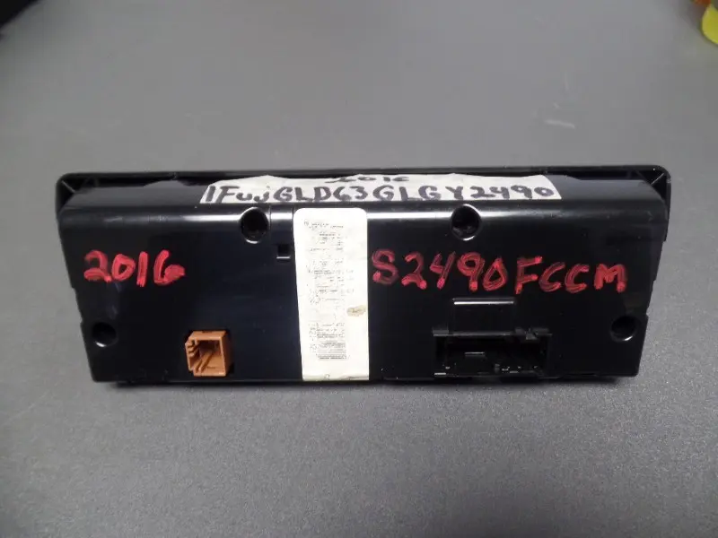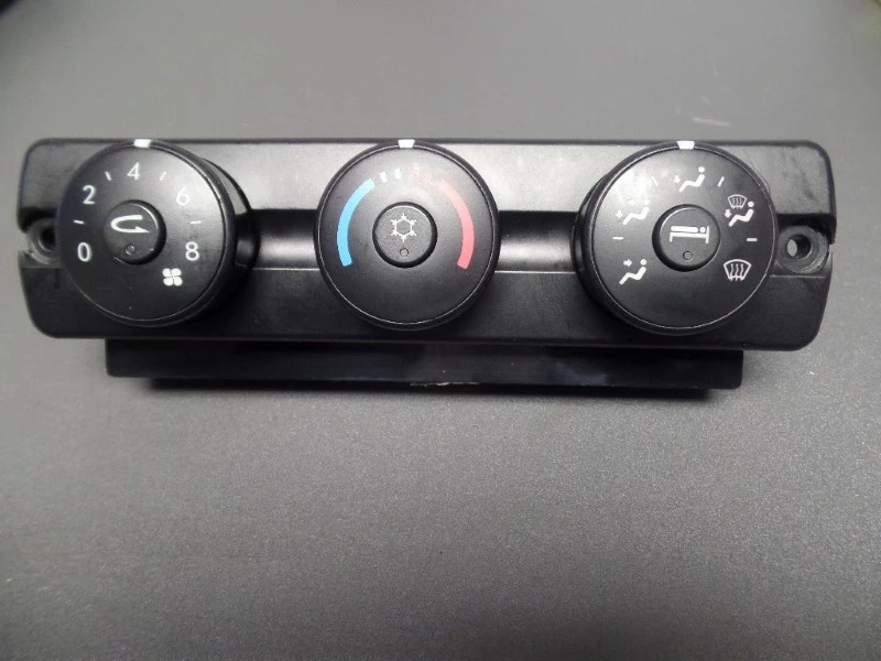 Used: Used Cascadia sleepercab temperature control module with sleeper auxiliary control. Heat & A/C. Broken at left mounting hole area and cracked near right mounting hole area.