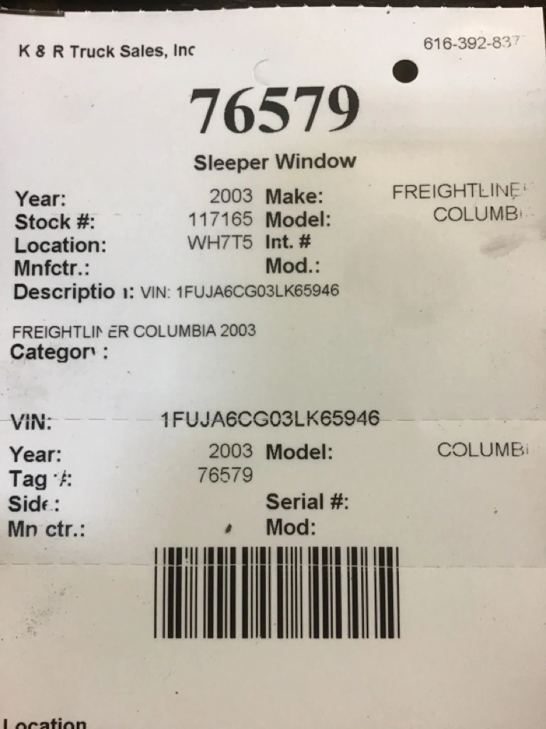 2003 FREIGHTLINER Columbia Back Glass