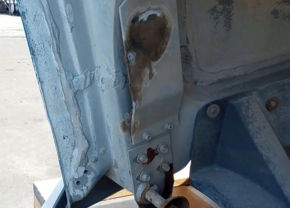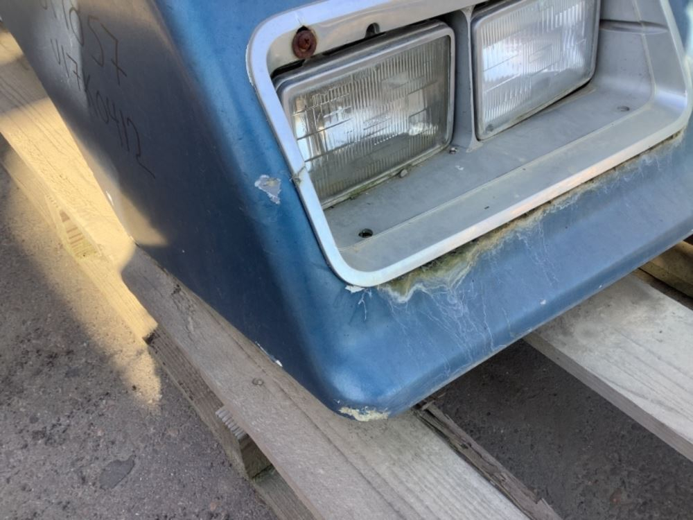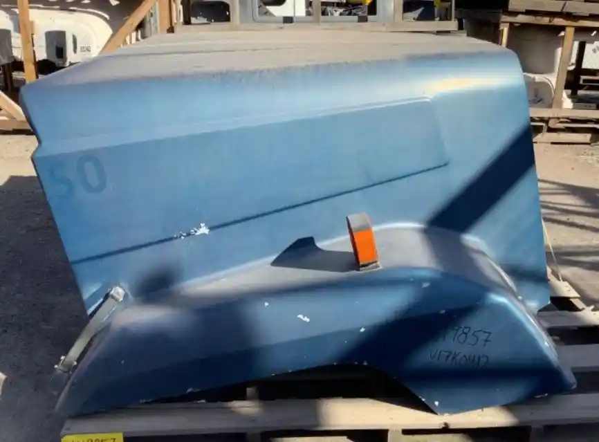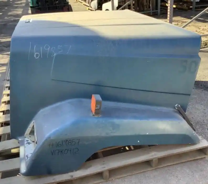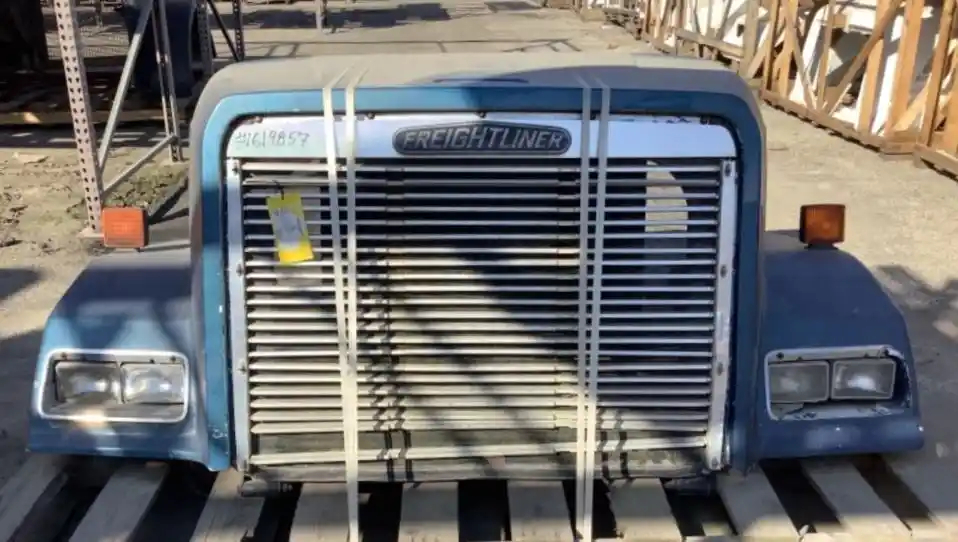 Used: Used 1995 Freightliner FLC112 Hood For Parts, 51"L, Broken Left Headlight Bezel, Small Chips On Fenders & Near Headlights, Chip On Right Side Panel. Repair Work Near Both Hood Latches. Repairable For Reuse.