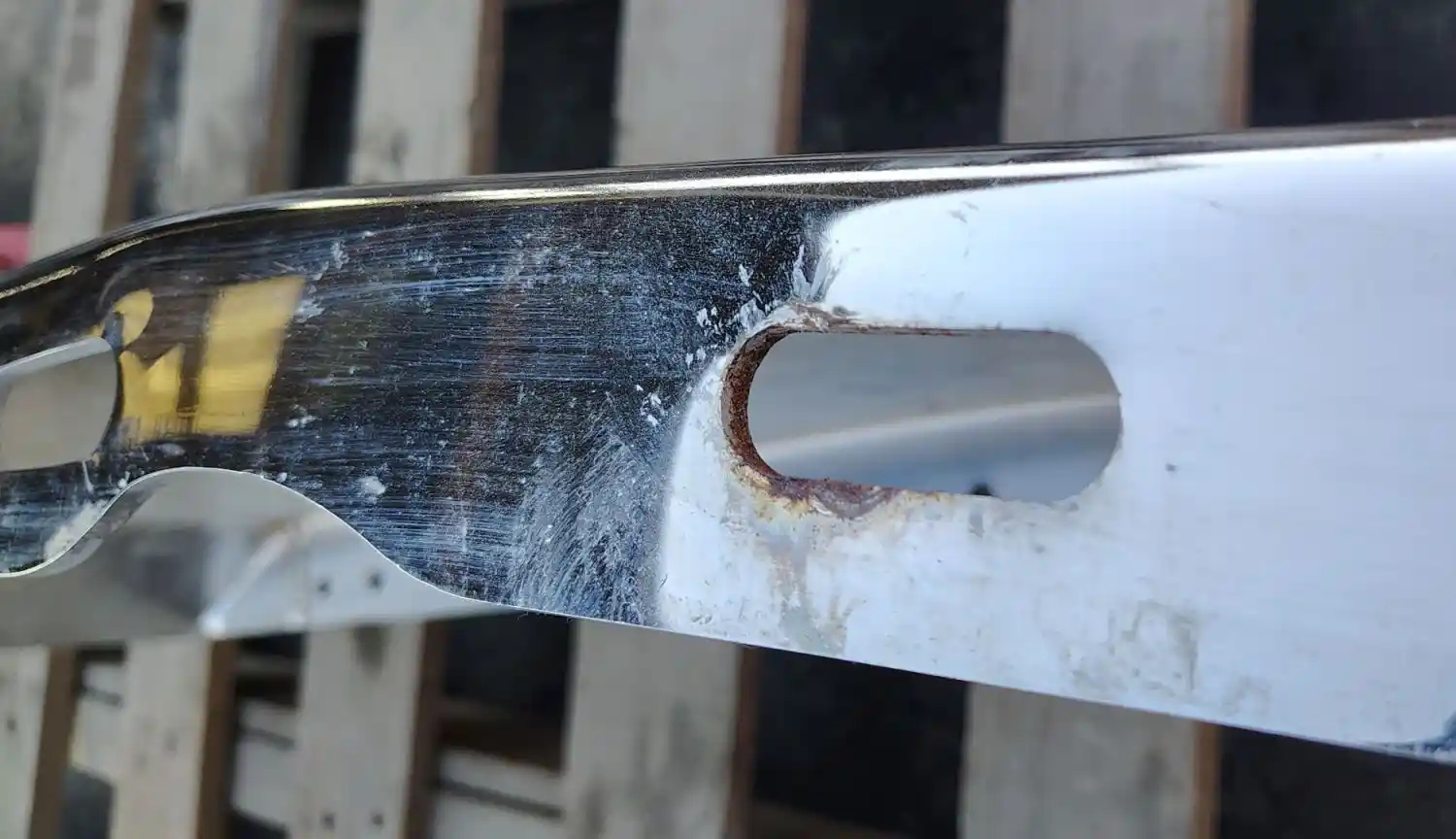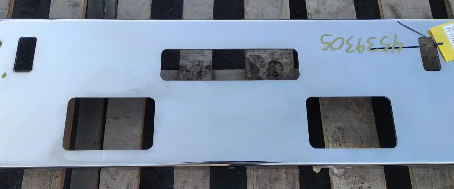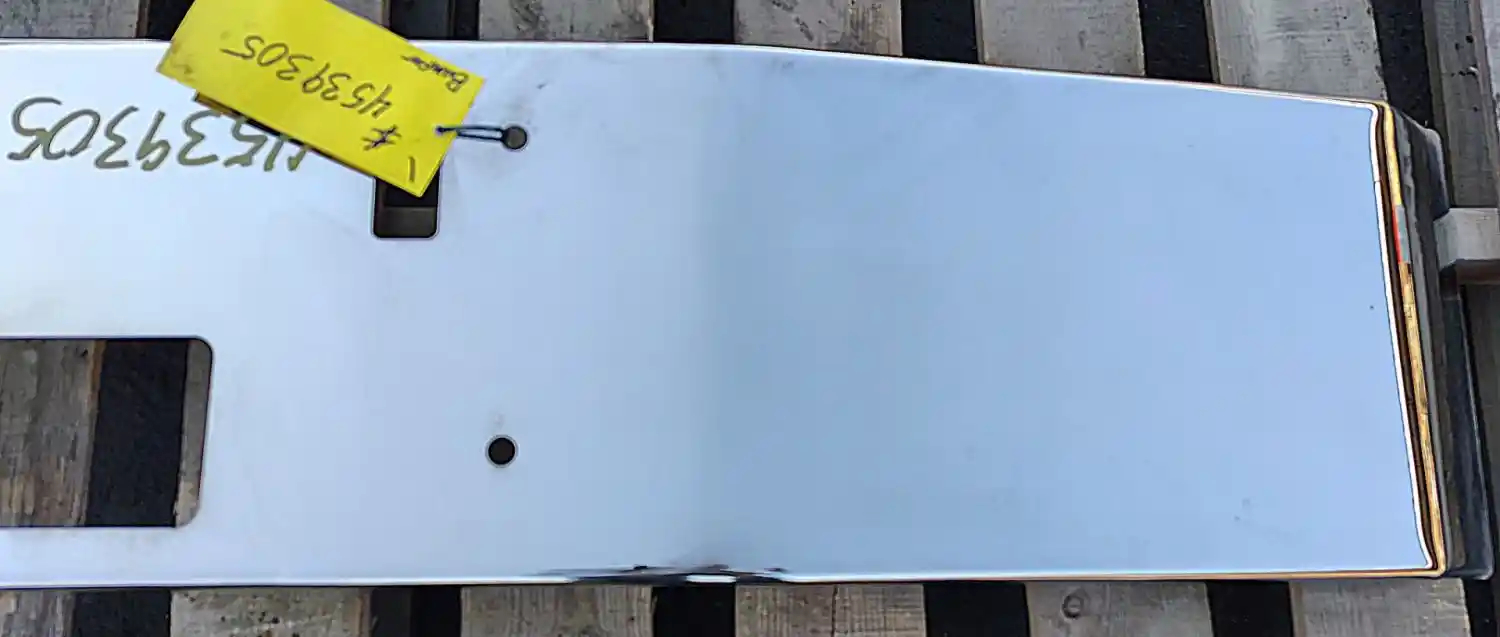 Used: Used 1989-1996 Freightliner FLD112 Aftermarket Chrome Bumper P/N CG-2011-04, 86.75"L x 12"W, 4 Bolt, 7 Gauge Steel, Fog, Center Tow Pin & 2 Outside Tow Pin Holes.