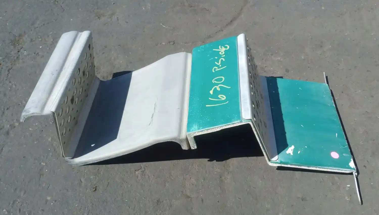 Used: Used 1994 Freightliner FLD120 Passenger Side RH Intermediate Tank Fairing, 12"L. P/N 22-40042-000, 22-39449-000. Small Areas Of Exposed Fiberglass, Scrapes On Bottom Section.