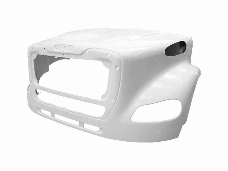 NEW: NEW 2003 AND UP FREIGHTLINER M2-112 PREMIUM FIBERGLASS HOOD, NOT PAINTED WITHOUT SLOTS FOR BEZEL, WITH LOWER EXTENSION, 44" CENTERLINE.