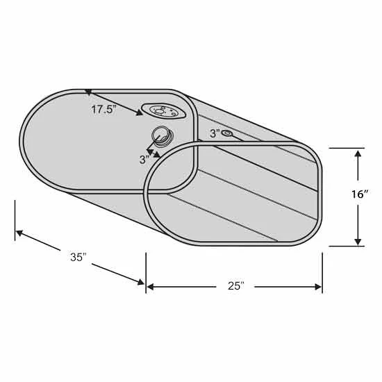 NEW - TANK ONLY: NEW - TANK ONLY INTERNATIONAL 4000 SERIES APPLICATION ALUMINUM D SHAPED FUEL TANK, 16" X 25" X 35" 55 GAL., PASSENGER SIDE FRONT FILL