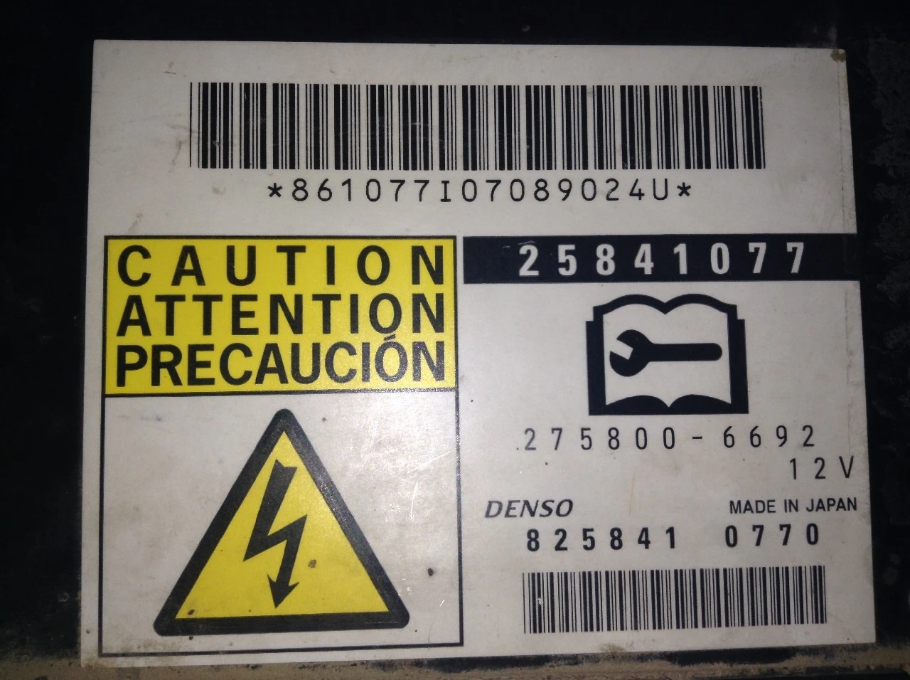 USED: USED ECM, PART # 25841077, 2758006692, DENSO PART # 8258410770 ID: 25841077