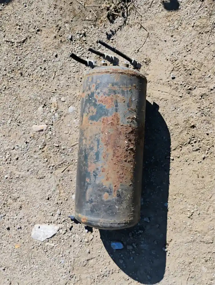 Used: Used USED AIR TANK L= 19 1/2 D=10 WITH 5 FITTINGS