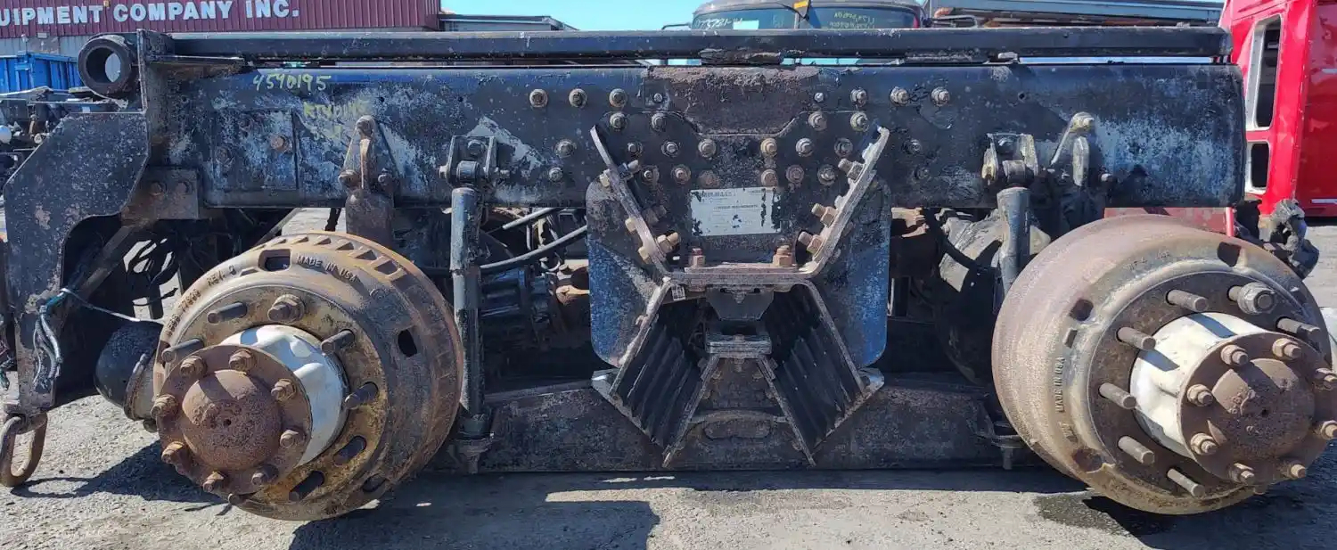 USED: USED Hendrickson Haulmaax 40K Tandem Cutoff Suspension w/ Meritor RT40145 - 5.29 Ratio Diffs & Housings, 10 Hole Pilot, Air Drum Brakes, ABS, STD Track Width. P/N RD20145NFN4825529, RR20145NFN4444529.