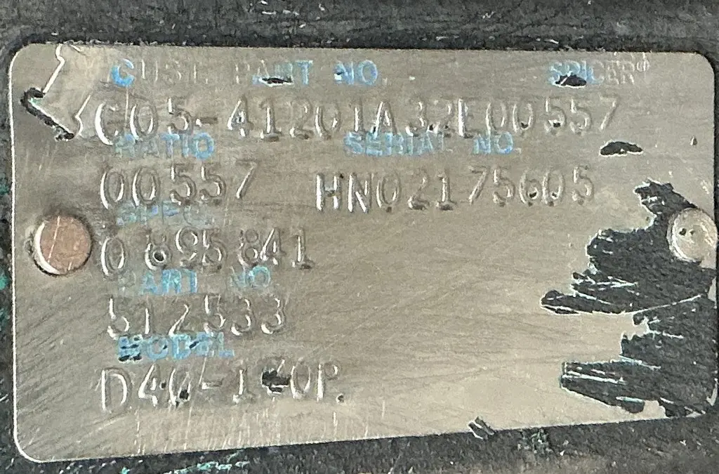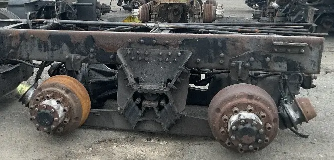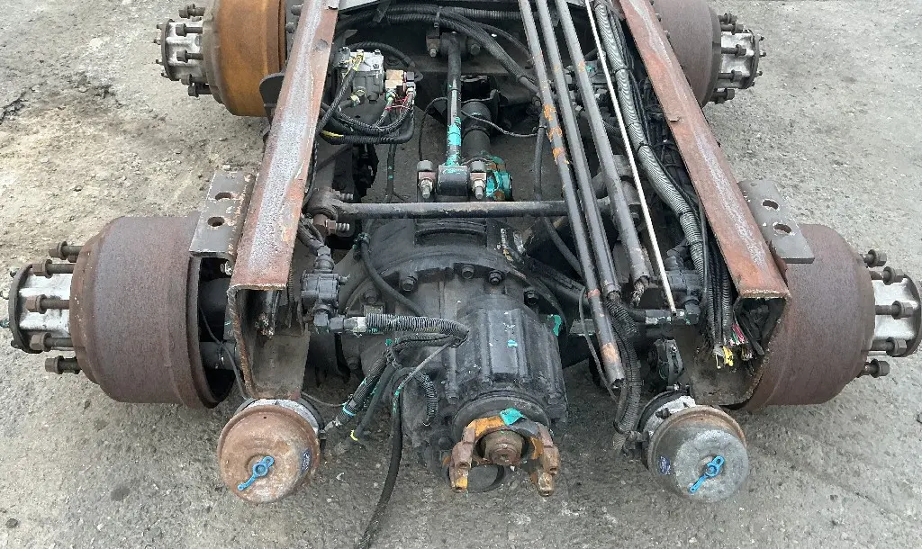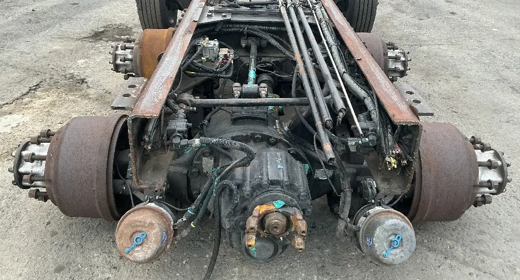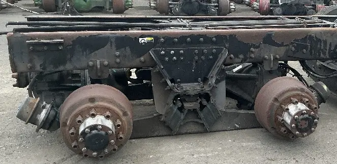 USED: USED Hendrickson Haulmaax 40K Tandem Suspension Cutoff w/ Spicer D40-170P/R40-170 - 5.57 Ratio Diffs & Housings, 10 Hole Pilot, Air Drum Brakes, ABS. P/N's 512533, 513015, 322986, 322988.