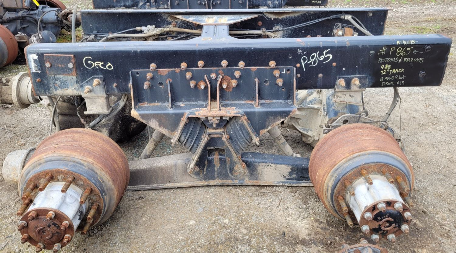 Used: Used Hendrickson HN402 Suspension w/ RT40145 Housings, Tracking Width: 72", 10 Hole Pilot, Drum Air. DIFFS NOT INCLUDED.