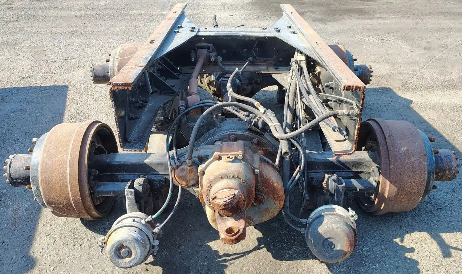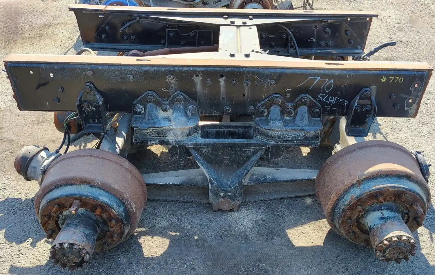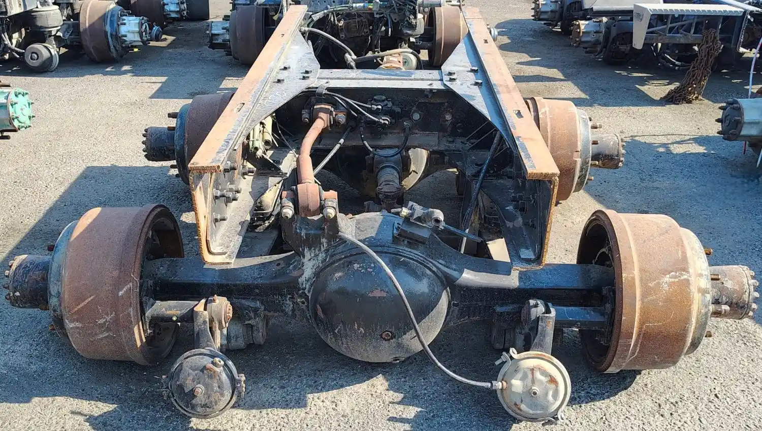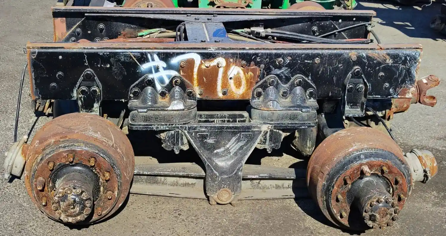 Used: Used Hendrickson RS340 Tandem Suspension Cutoff, Includes Rockwell SLHD Housings w/o Diffs, 10 Hole Budd, Air Drum Brakes.