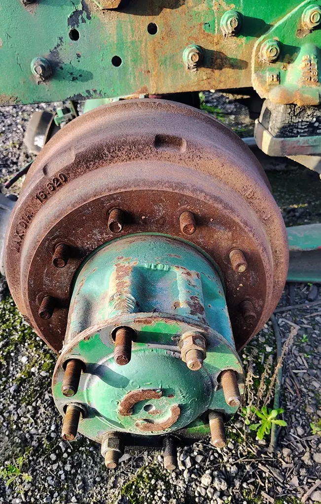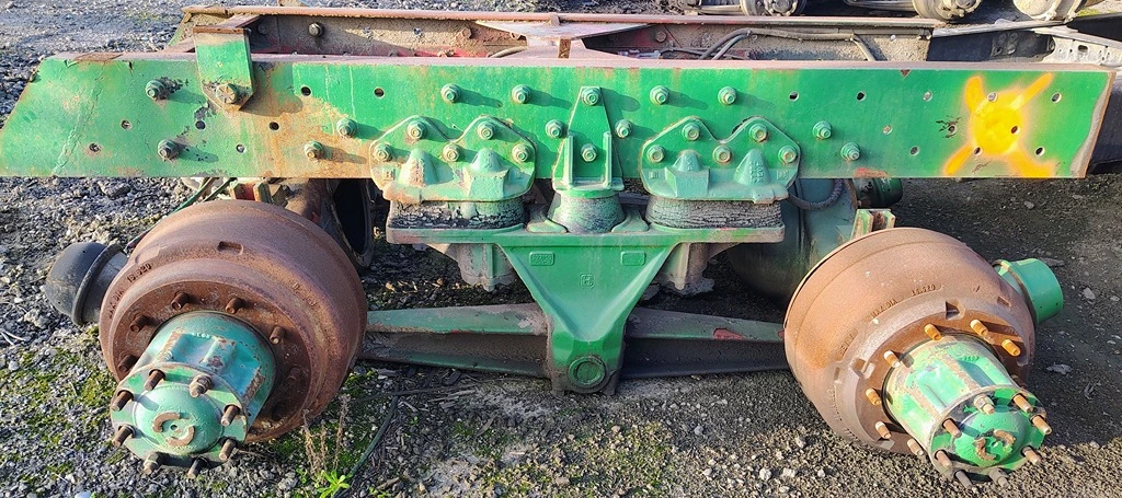 USED: USED Hendrickson RS380 Tandem Suspension Cutoff w/ Meritor SQ100 Housings, 10 Hole Budd, Air Drum Brakes. P/N's QD100QX86, QR100QX40