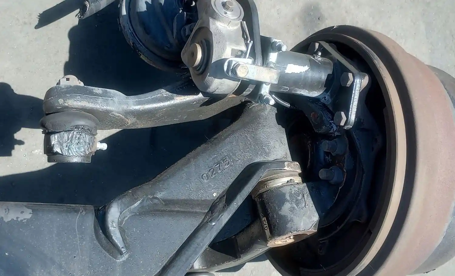 Used: Used Hendrickson STK120-112 Steertek Front Axle, 12K Capacity, 32" Spring Centers, 3" Spring Width, 10 hole Pilot, Air Drum Brakes, ABS. P/N 64905-1, 3834296C91. S/N AX205415